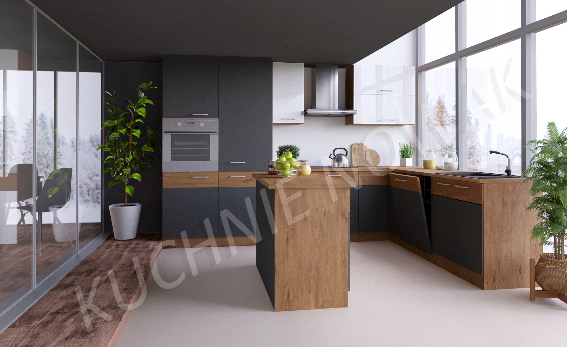 Сучасний кухонний гарнітур AGA/ VIGO II GLOSS 310 x 230 см - 3 КОЛЬОРИ: БІЛИЙ, BURROW АБО MATTER GREY