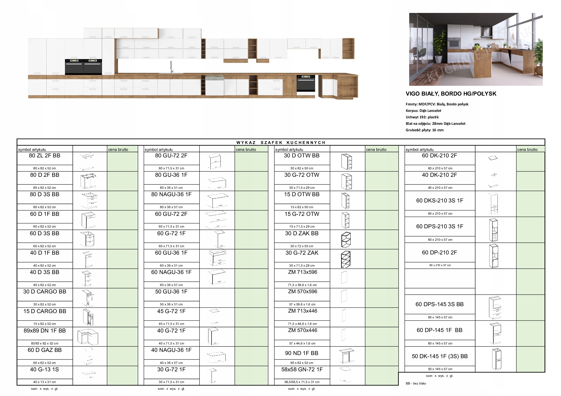 Нижні шафи: 60 DP-210 2F, 60 DK-210 2F, 40 D 1F BB, 60 D 3S BB, 89/ 89 D NAR BB, ZM 60 ( спереду до вбудованих посудомийних машин), 80 ZL 2F BB