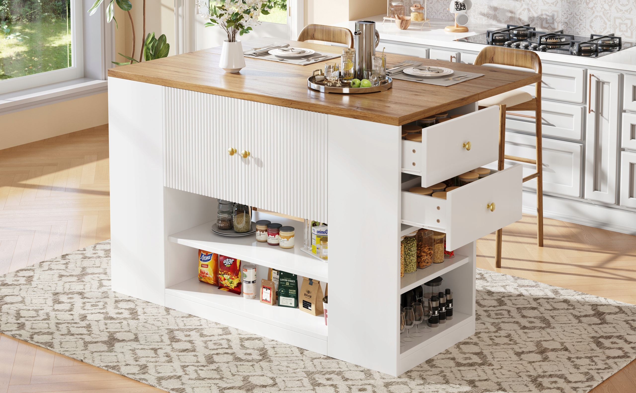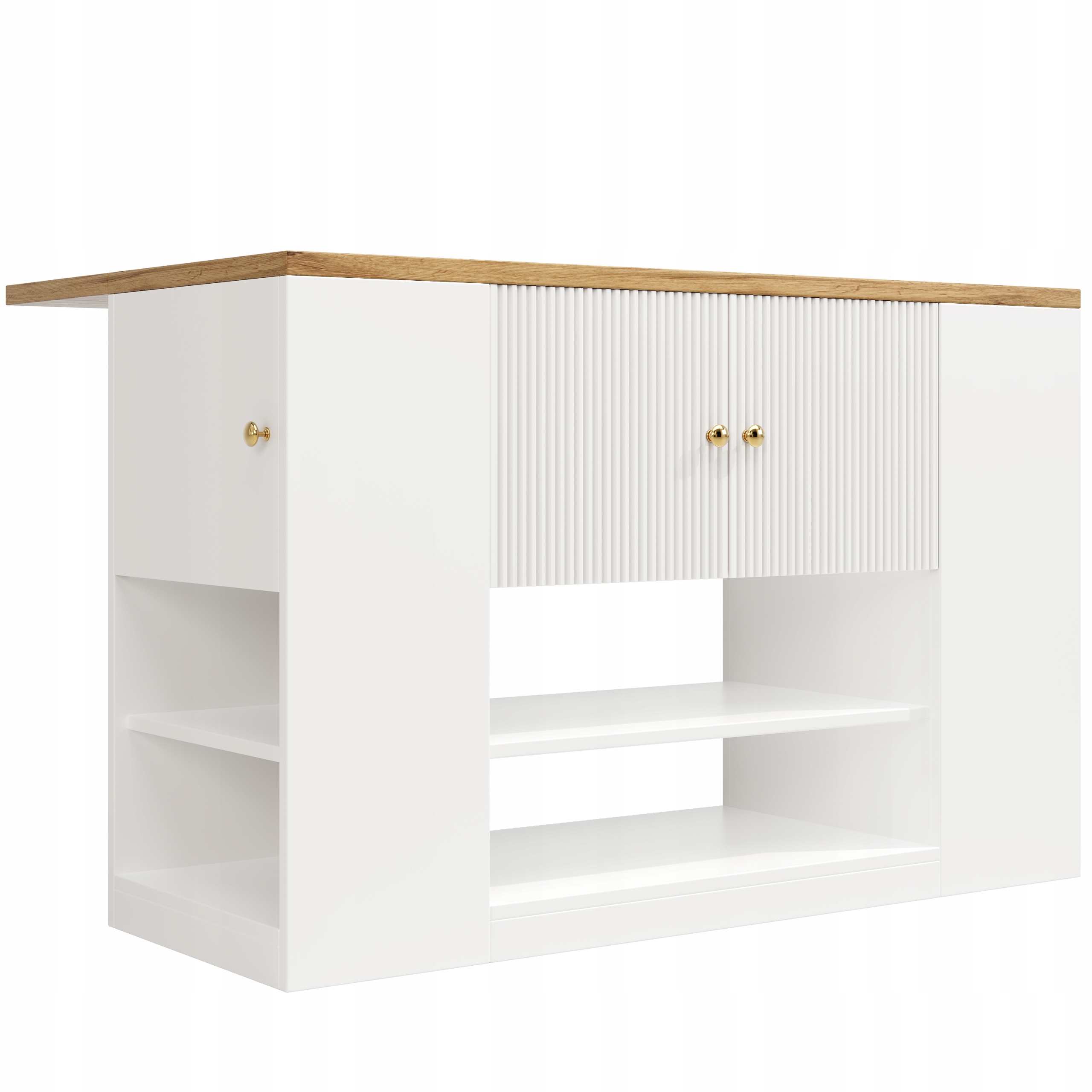 - Цей кухонний острів пропонує багато місця для зберігання. По обидва боки острова є висувні ящики та полиці, які відповідають різноманітним потребам у зберіганні.