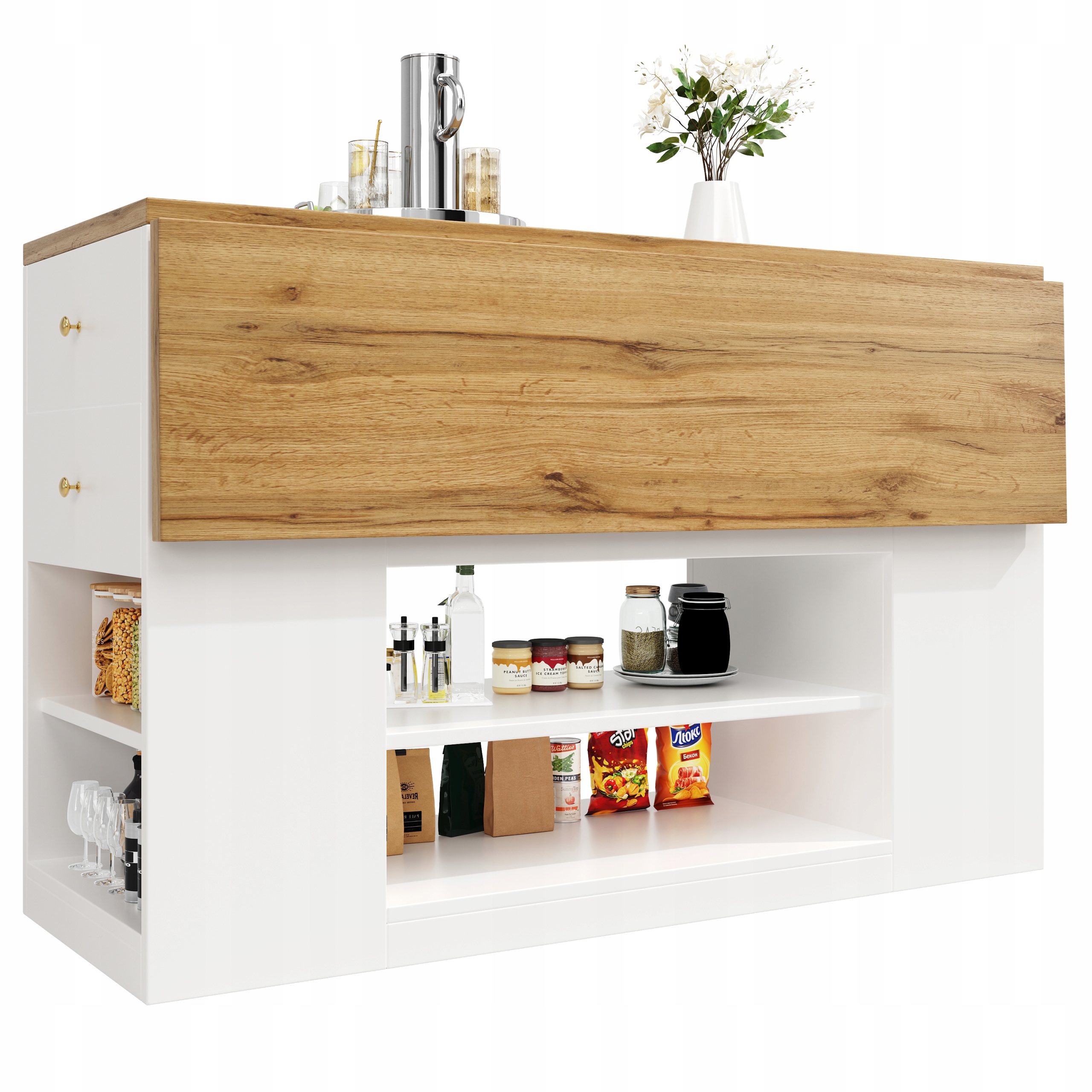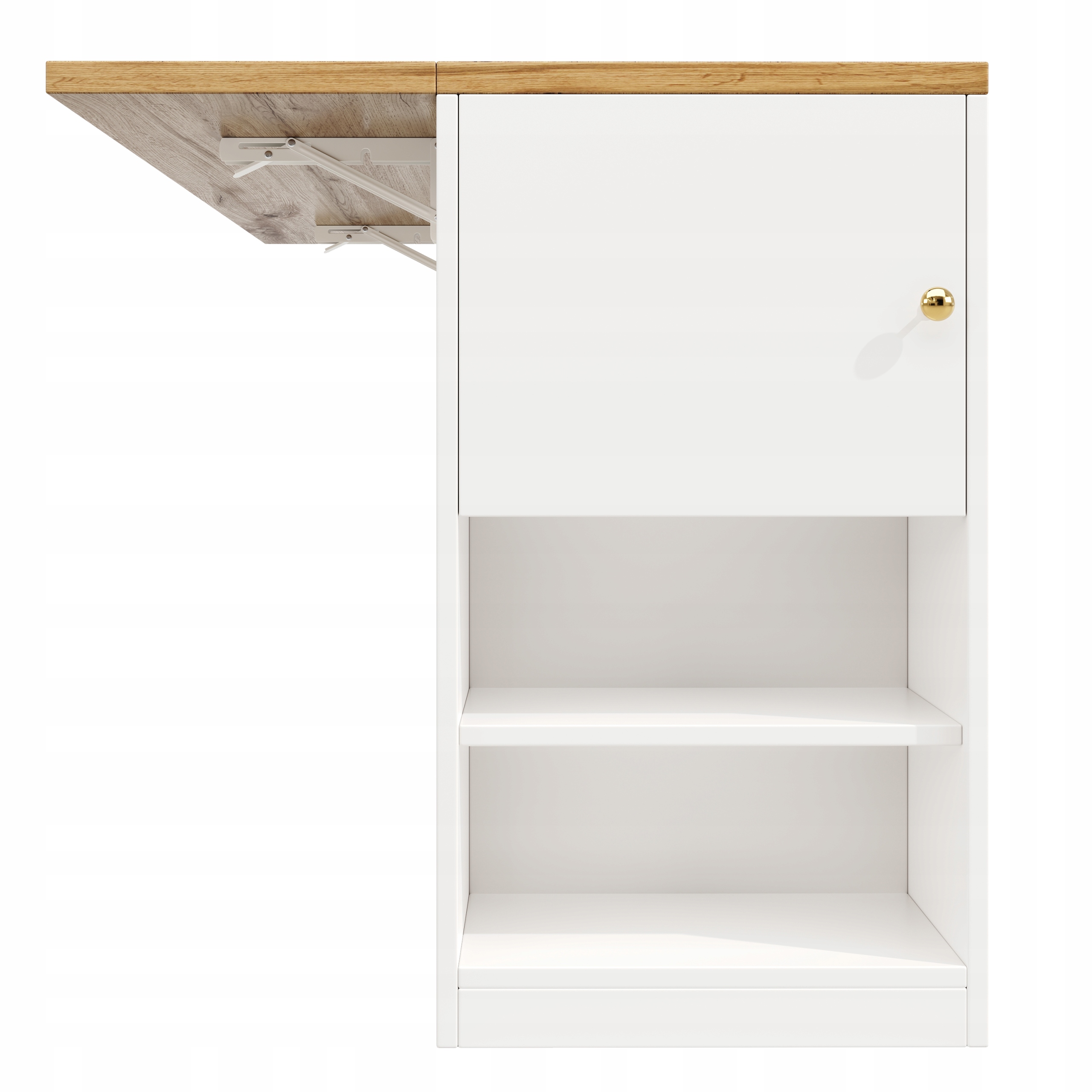 - кухонний острів довжина 140 см, ширина 40 см, висота 90 см. Цей кухонний острів має відкидну стільницю, яку в розкладеному вигляді можна використовувати як обідній стіл. У розкладеному стані загальна довжина 70 см.
