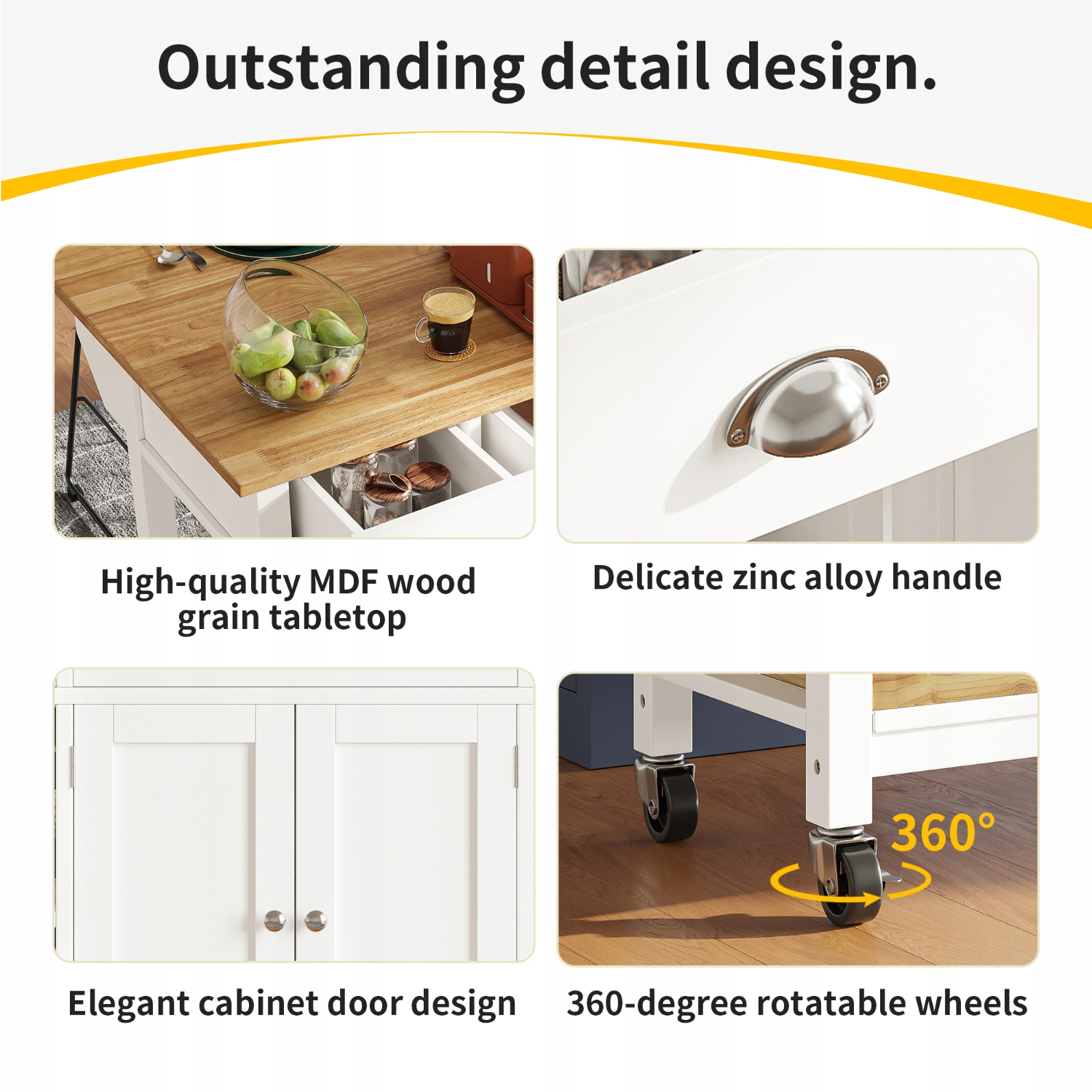 Сучасний кухонний острів, обідній візок, 120×45×90 см, білий