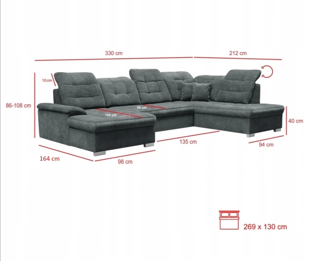 Площа для сну: 269 - 130 см