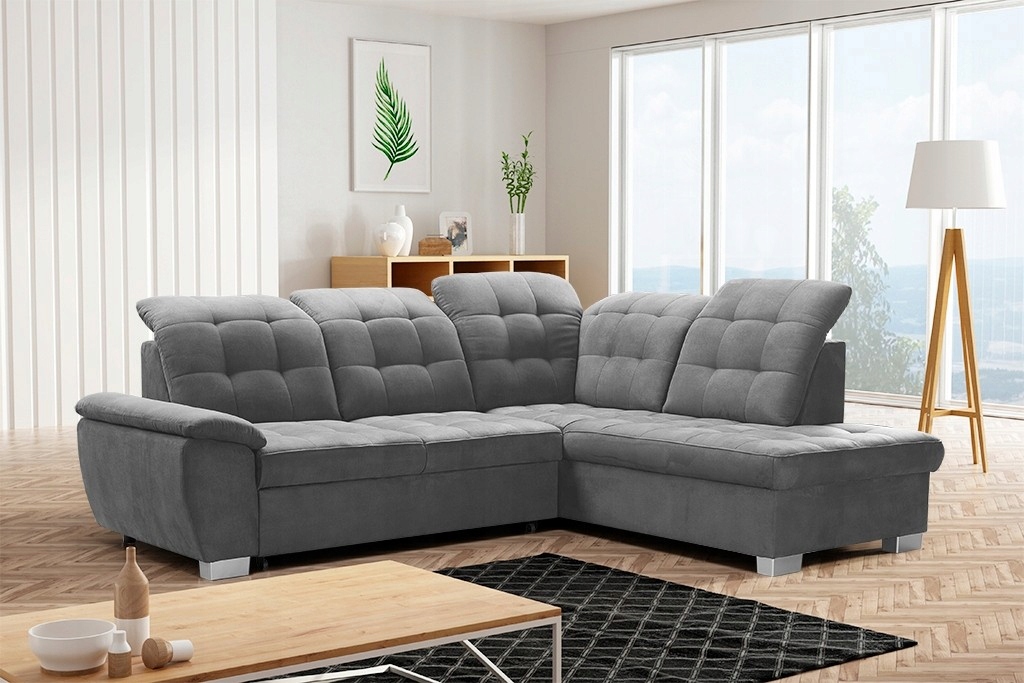 - Кутовий диван має контейнер для постільної білизни