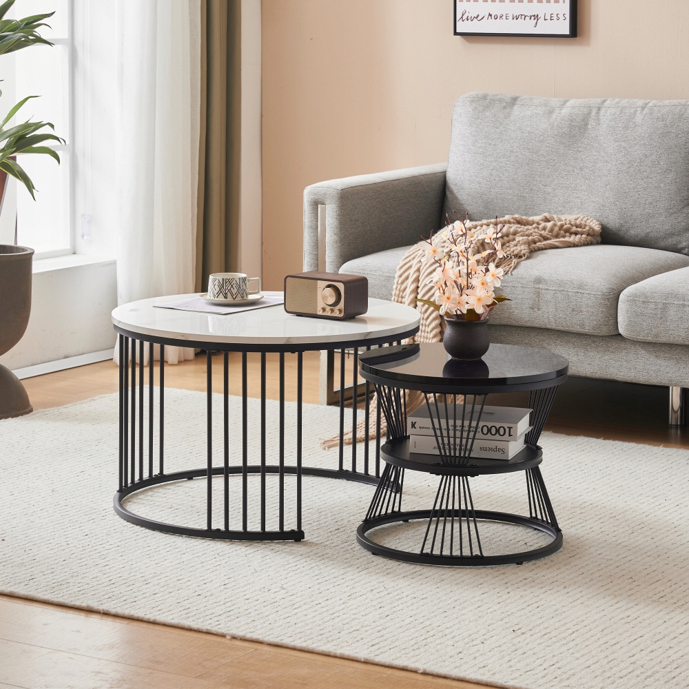 【Продуманий і унікальний дизайн】Цей сучасний круглий журнальний столик складається з двох менших столиків зі структурою, яка дозволяє легко з’єднувати або використовувати окремо. Компактні та легкі столи легко переміщувати та транспортувати. Ви можете розмістити ці столики окремо в різних частинах кімнати або поставити їх поруч для зручного доступу до кави та закусок. Ідеально підходить для віталень, спалень, балконів, невеликих приміщень тощо.