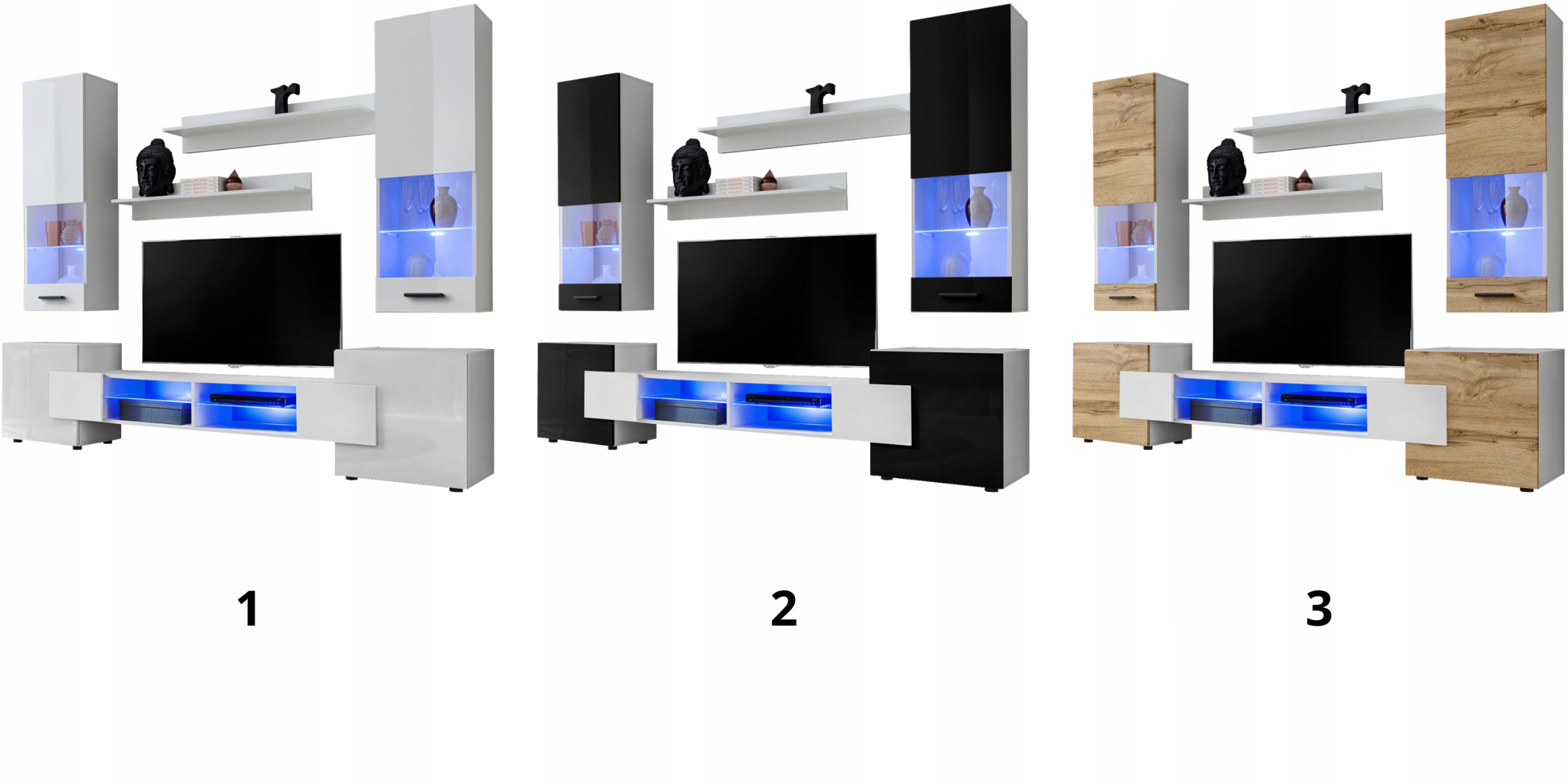 Сучасний настінний блок телевізор удача / різні кольори / скляні полиці / набір