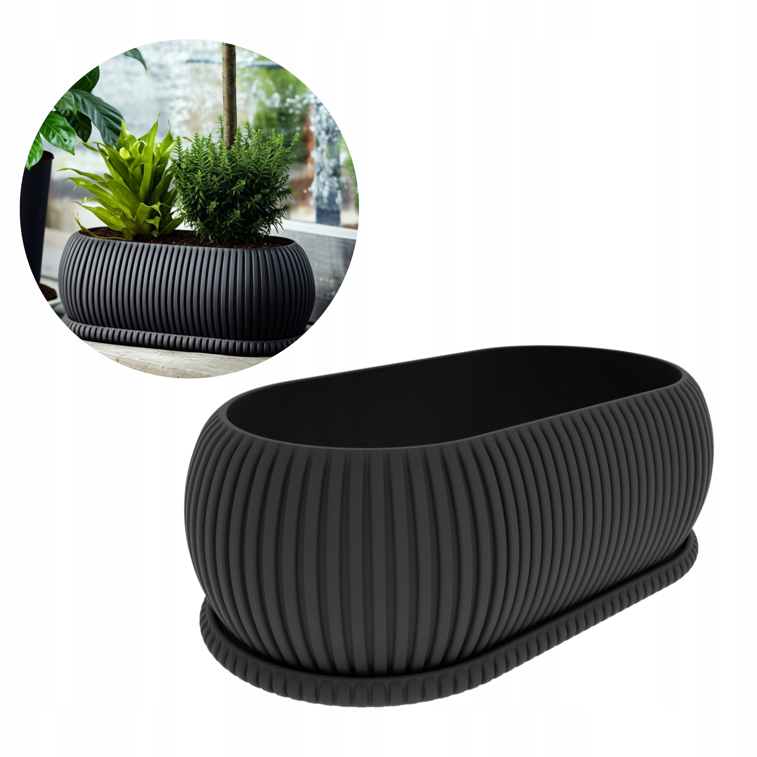 Сучасний овальний горщик з внутрішньою та садовою підставкою