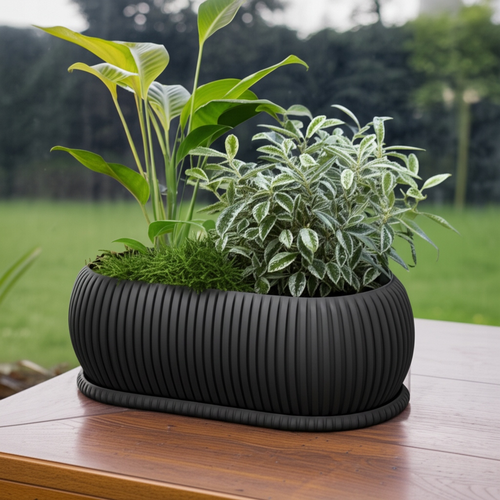 Уявіть свій дім як оазис краси та гармонії, де сучасний овальний горщик додає елегантності та свіжості інтер'єру та саду. Створений для ентузіастів стилю та функціональності, він ідеально підходить до прекрасних декоративних рослин та трав, змінюючи кожен простір.