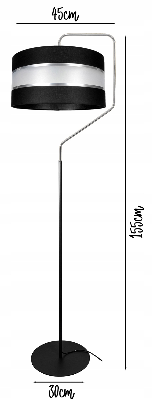 Торшер Модерн - чорний з хромованим доповненням і абажуром в модному, сучасному поєднанні чорного і хромованого. Дизайнерський стиль чудово впишеться у ваш інтер'єр. Він доповнює стельові світильники.