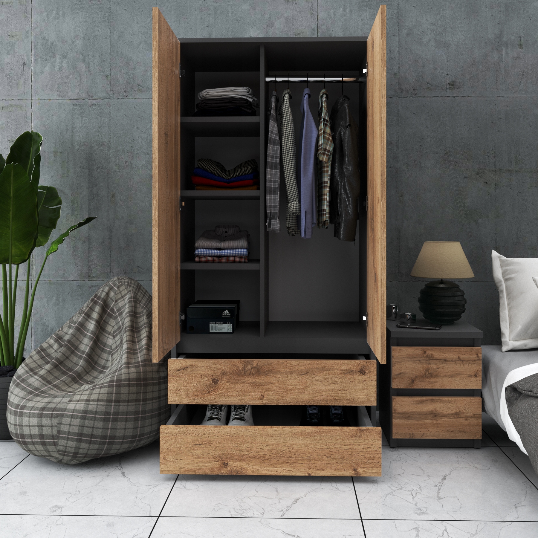 СУЧАСНА ШАФА 90CM 2D2SZ СІРИЙ WOTAN