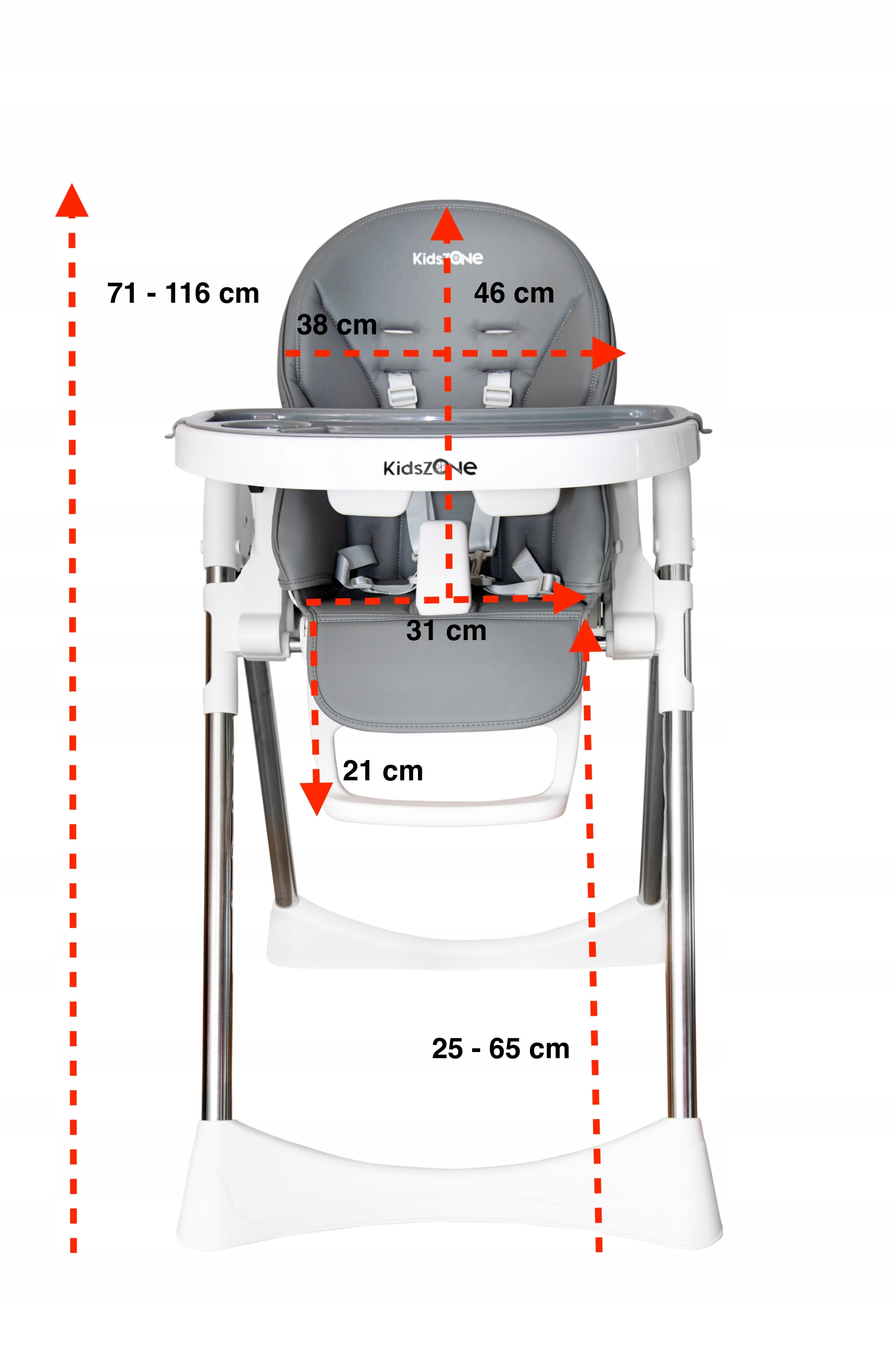 Стільчик для годування Kids Zone пропонує всі функції та якість. Він ультралегкий і багатофункціональний, росте разом з дитиною, від народження до 5-6 років. Протягом перших кількох місяців дитячий стілець можна використовувати як зручне, розслаблююче вишибало. З 6 місяців служить стільчиком для годування та ігор. Пізніше, без підносу, ідеально підходить для їжі разом з батьками. З іншого боку, максимально опущений стілець без підносу послужить сидінням для старшої дитини.