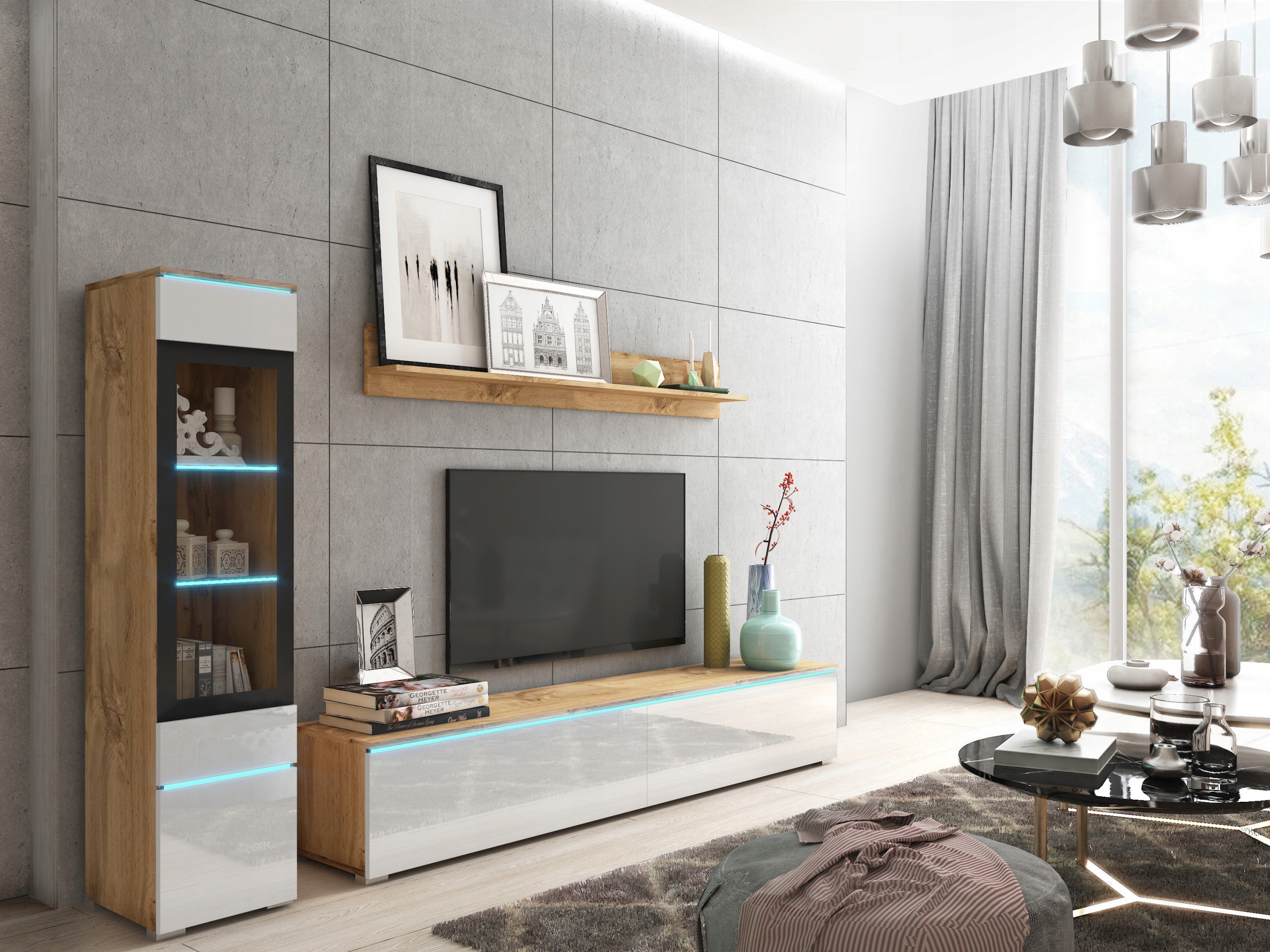 СУЧАСНИЙ СТИЛЬНИЙ КОМПЛЕКТ МЕБЛІВ ДЛЯ ВІТАЛЬНОЇ WOTAN ДУБ БІЛИЙ ГЛЯНЦЬ