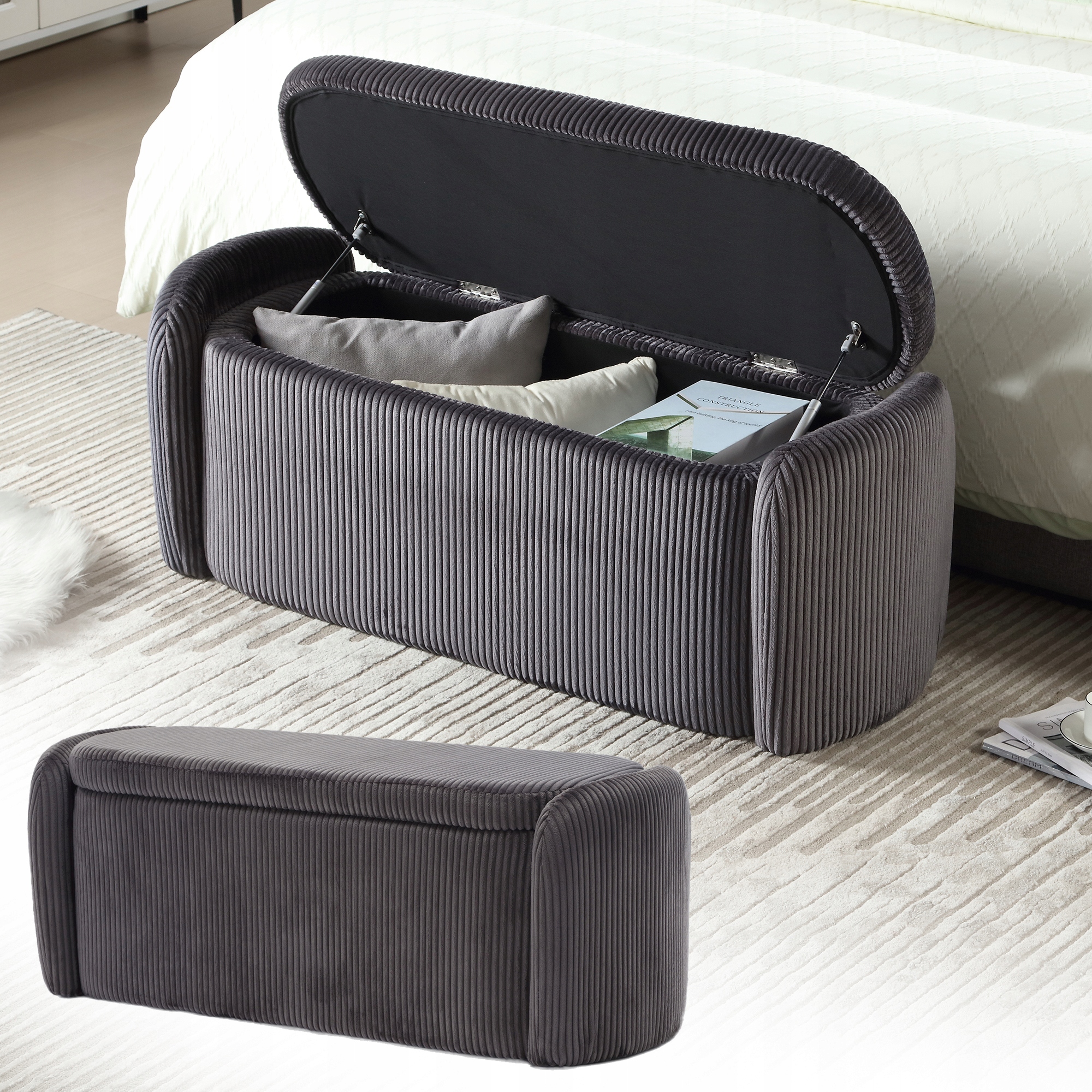 Moderne Opbergpoef (gestreept fluweel, multifunctioneel)