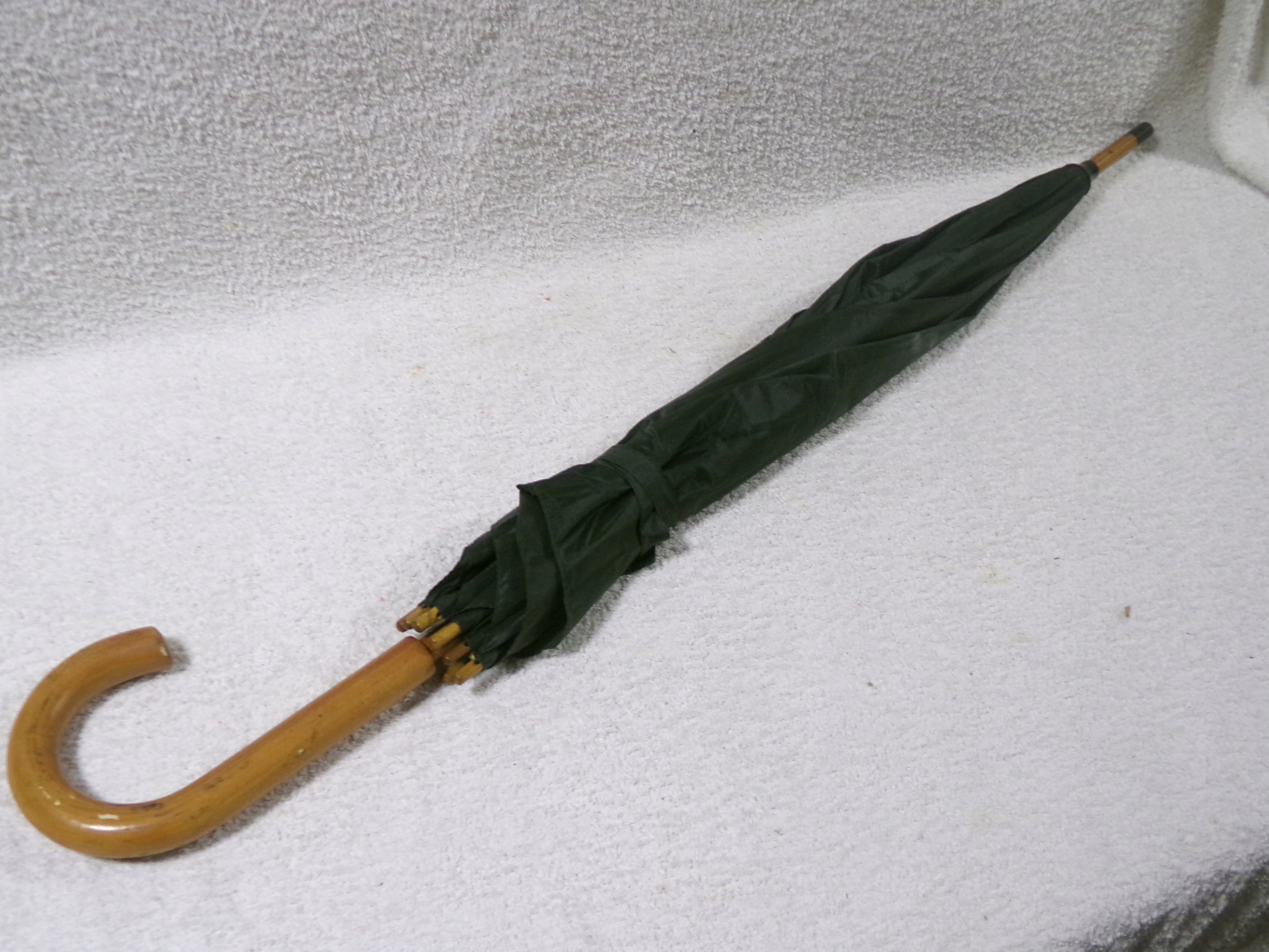 Автоматична парасолька з дерев’яною ручкою діаметром 93 см, довжиною 88 см, вагою 0,40 кг. Статус зберегвся хорошим, без пошкоджень, делікатні ознаки використання, ефективні.