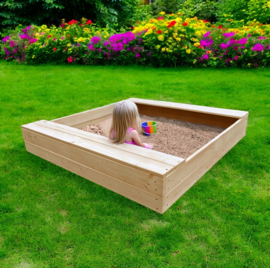 Суцільна дерев’яна пісочниця з кришкою та килимком соснової дошки