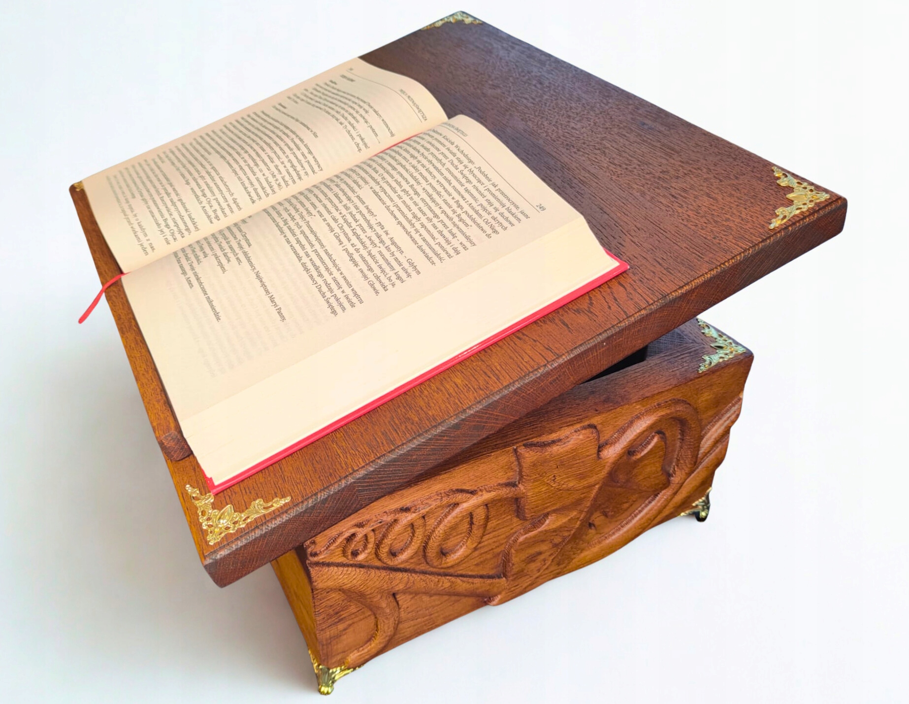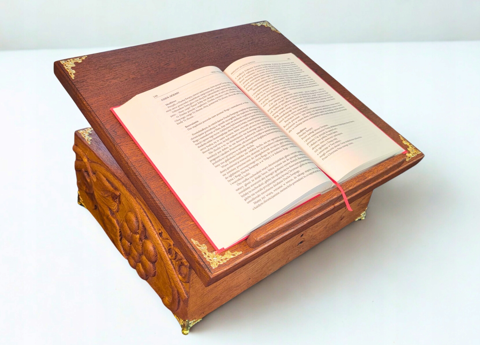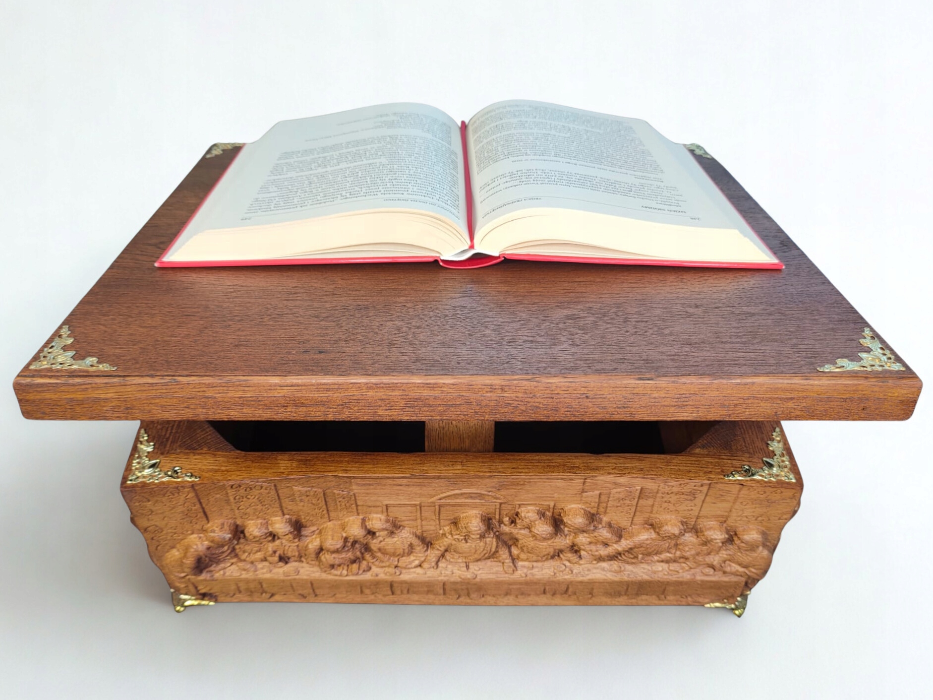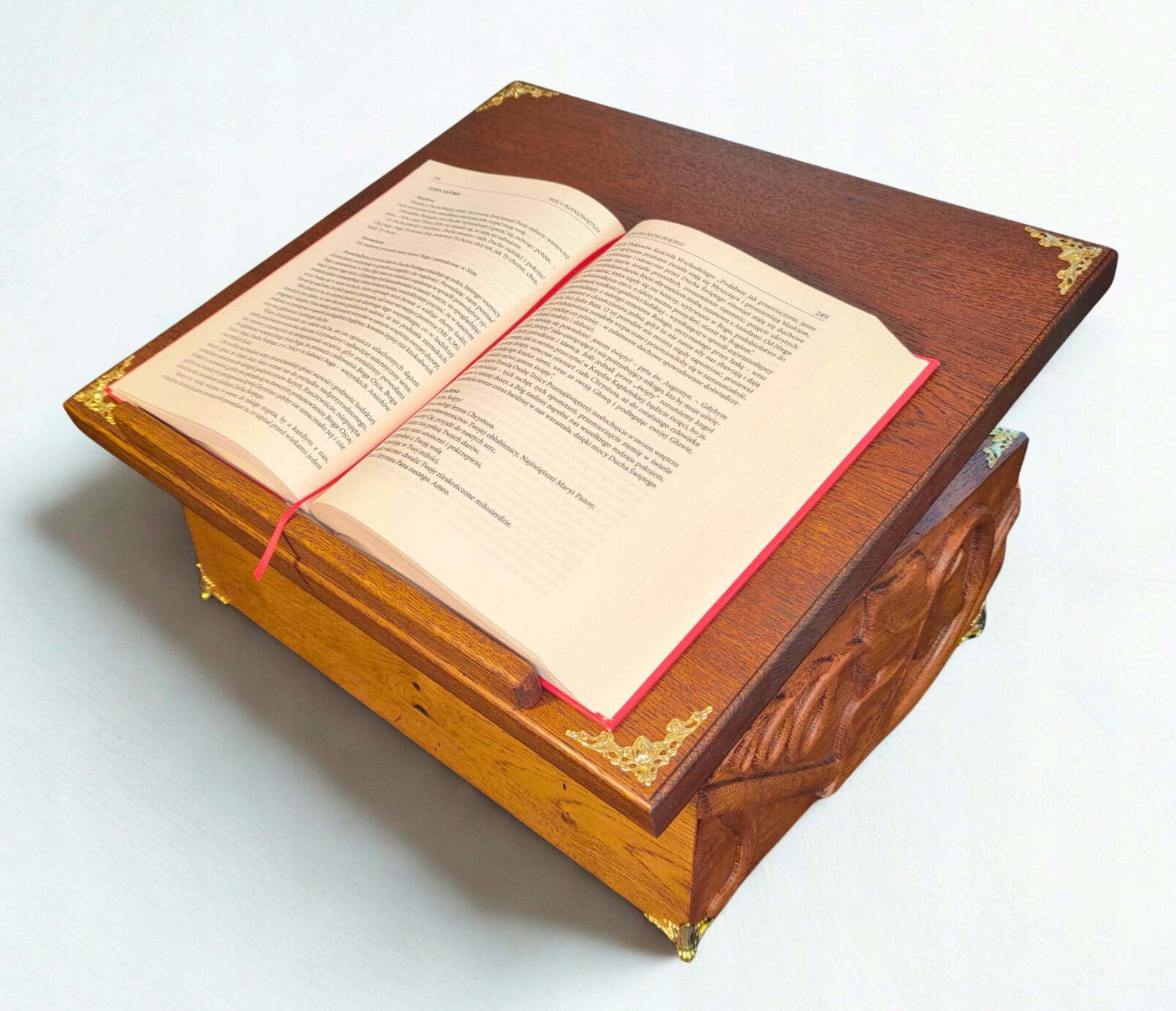 Елегантний, міцний і чудово виготовлений дерев'яний стіл для місала. Це унікальне літургійне спорядження, яке чудово поєднує в собі практичність, довговічність і художню майстерність.