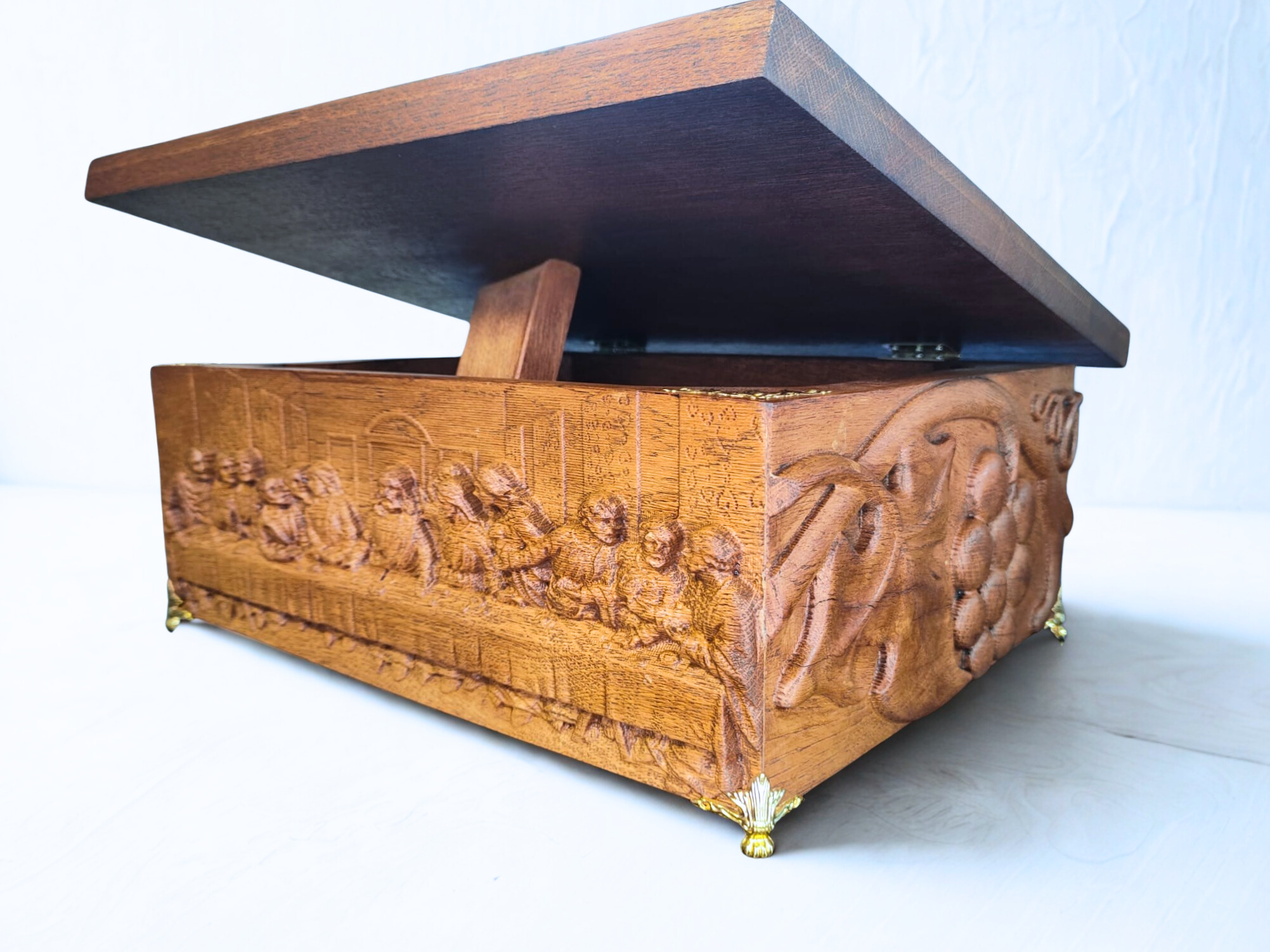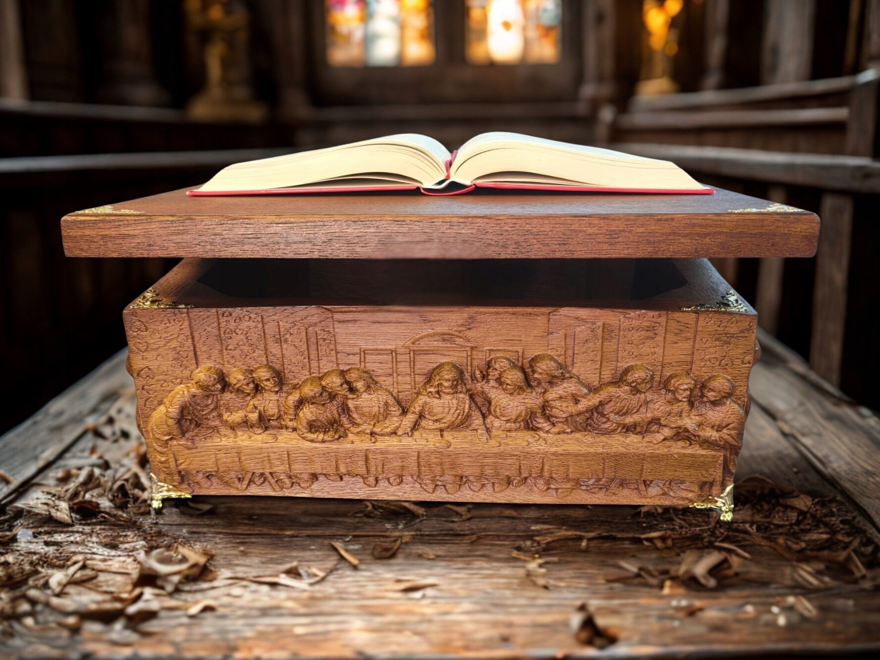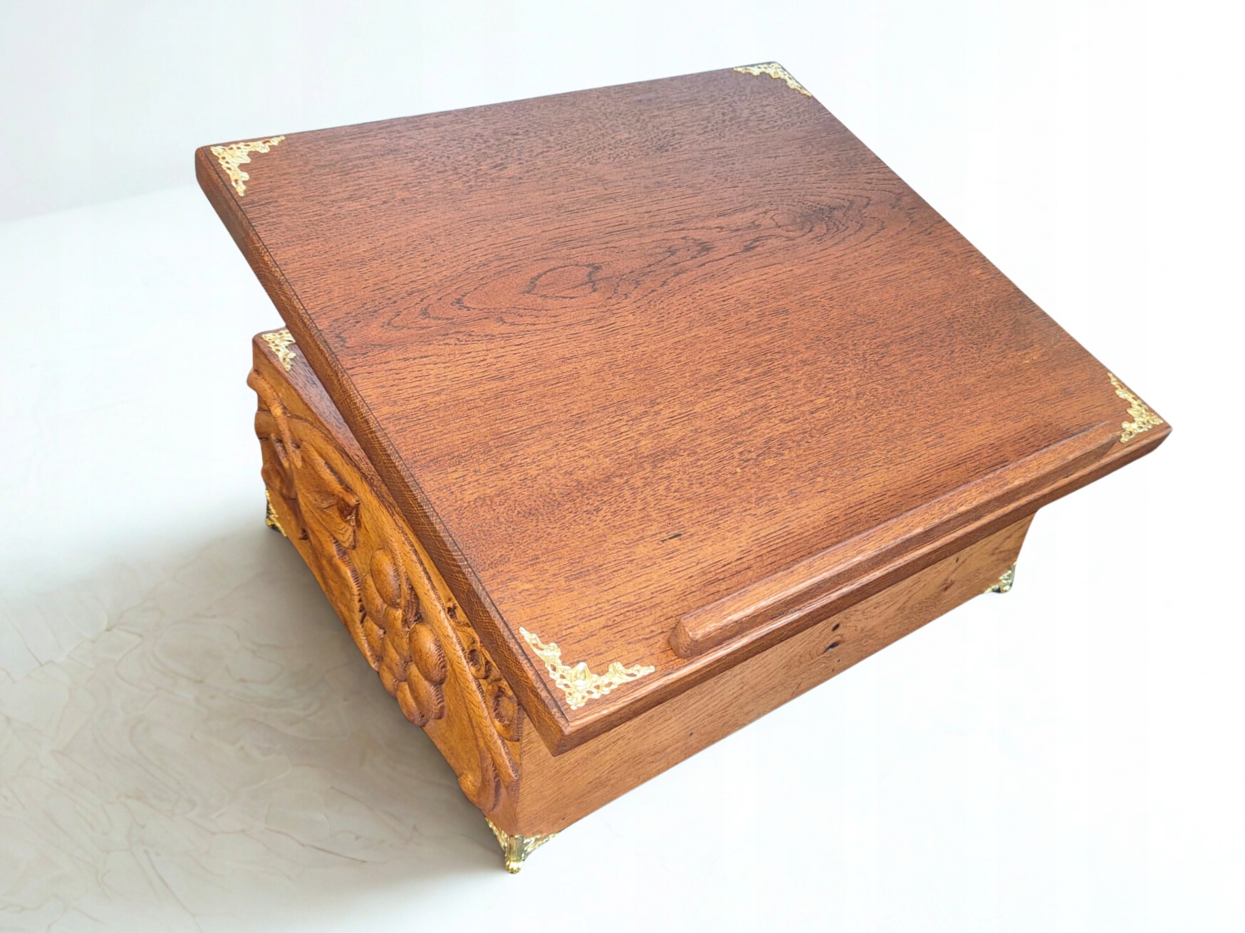 Предметом пропозиції є елегантний, масивний письмовий стіл, виготовлений з високоякісної деревини. Це надзвичайно практичний і водночас декоративний елемент літургійного спорядження, який ідеально підходить для церков, каплиць, монастирів, а також домашніх святинь та приватних молитовних місць.