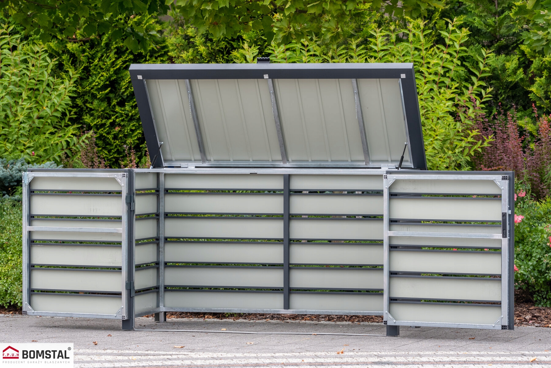 3x 120L сміттєві контейнери (корпус сміттєвого колеса) виготовлений з міцного, високоякісного металу. Оснащений суцільними дверима та клаптям на телескопічних циліндрах, полегшуючи кидання сміття та сегрегації відходів, допомагає підтримувати порядок та естетику навколишнього середовища. Громадяни сміття не тільки функціональні, естетичні, але й підтримують ефективну переробку та догляд за навколишнім середовищем.