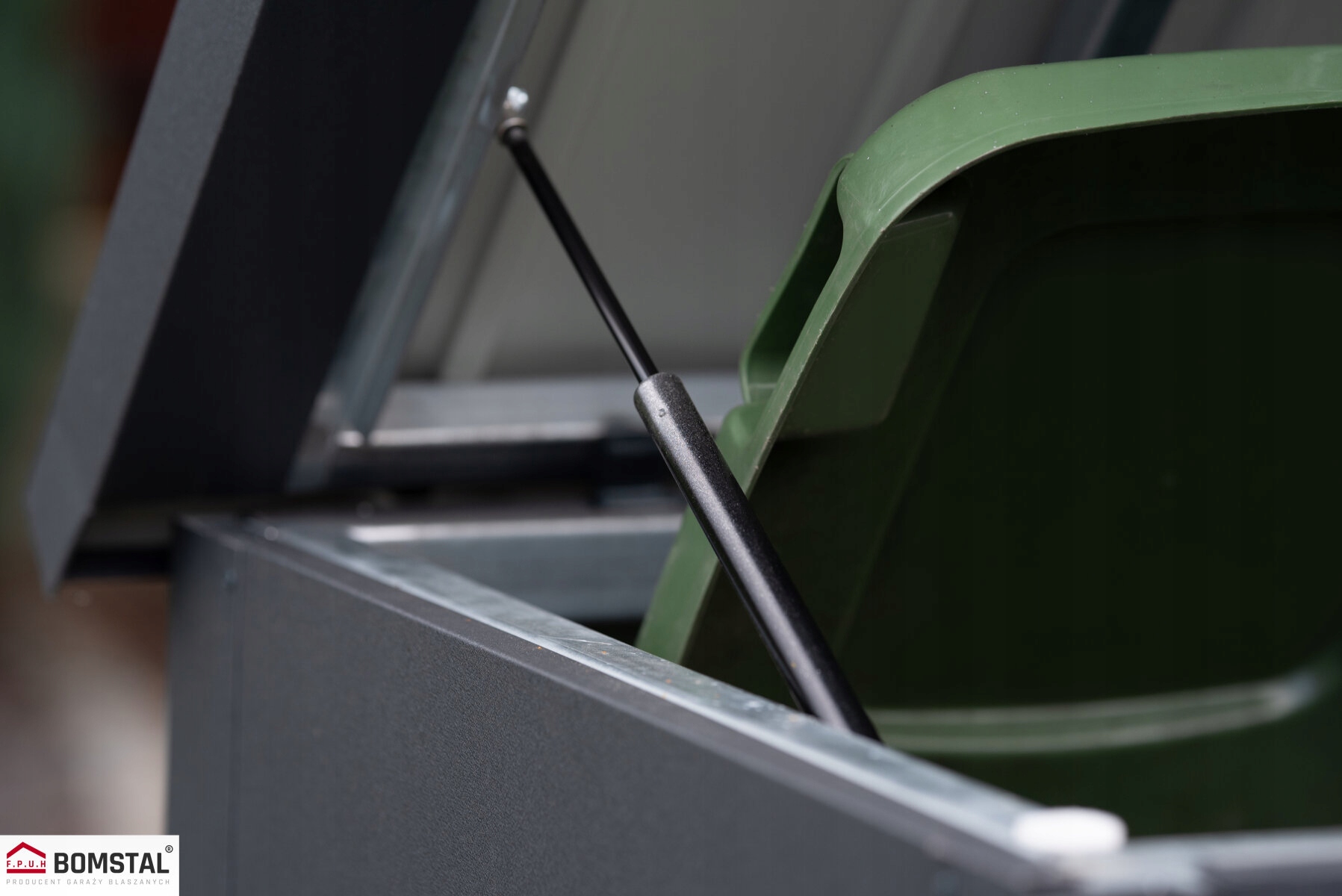 Поверхня захищена спеціальним захисним покриттям, завдяки якому матеріал зберігає стійкість до корозії та негативних погодних умов. Оснащений міцними дверцятами та заслінкою з телескопічними приводами, які полегшують викидання сміття та сортування відходів, він допомагає підтримувати порядок та естетику навколо. Укриття для сміття є не тільки функціональним та естетичним, але також підтримує ефективну переробку та піклування про довкілля.