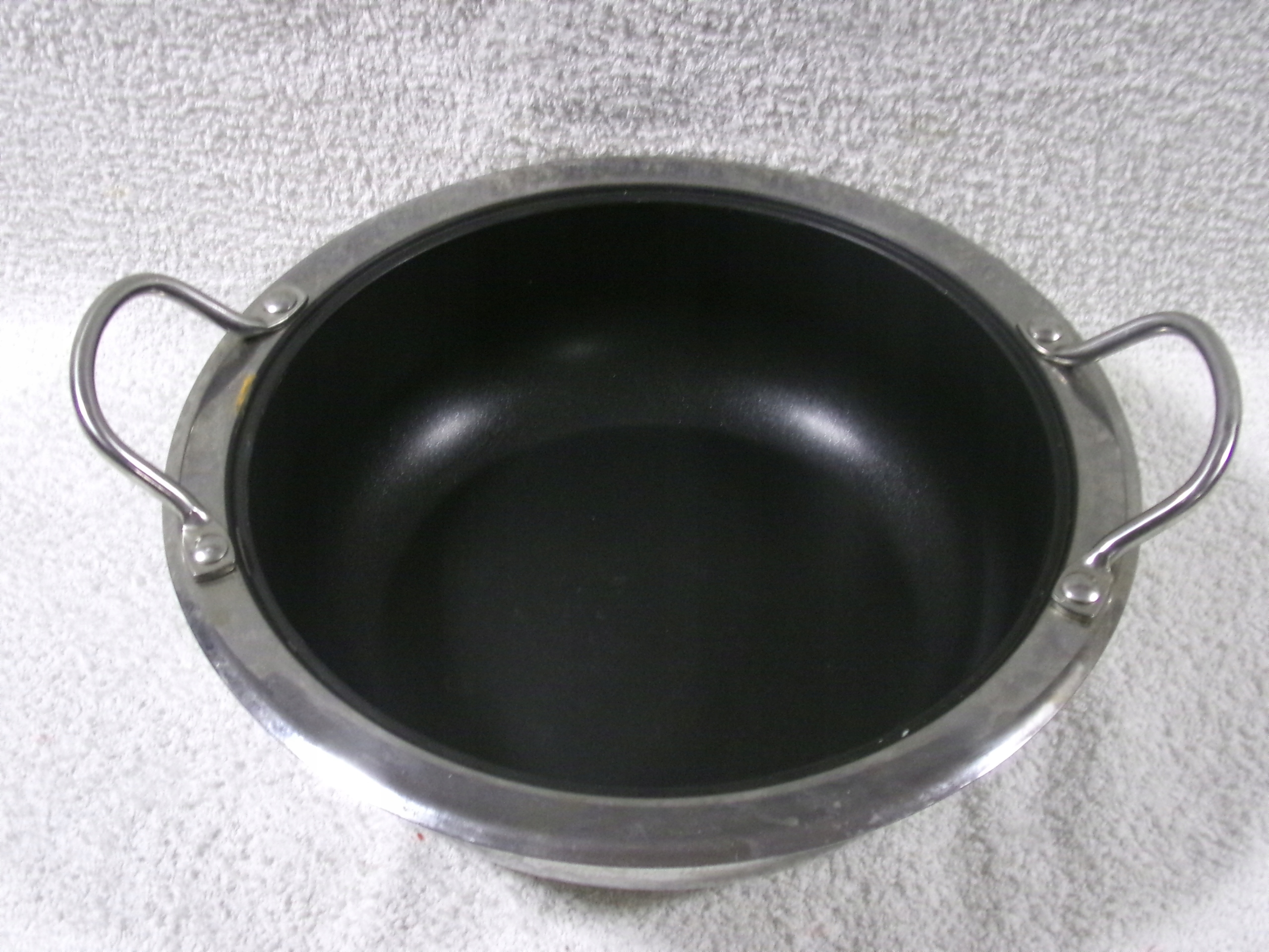 металевий горщик з нержавіючої сталі з діаметром 36x31,5 см, висотою 9,5 см, ємністю 4,3 літра, вагою 1,26 кг. Умова дуже хороша, без пошкоджень, звичайні сліди використання користувачів. Суцільна гілка. , DHL, DPD, АУКА -5 UPS -5.