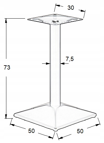 ніжка діаметром 75 мм, виготовлена зі сталі з порошковим покриттям, товщина стінки 1,2 мм