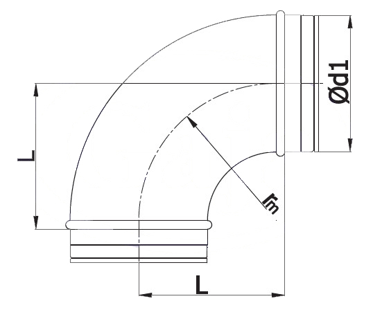 Суцільне коліно оцинковано 90*, FI 200 bp-200-90