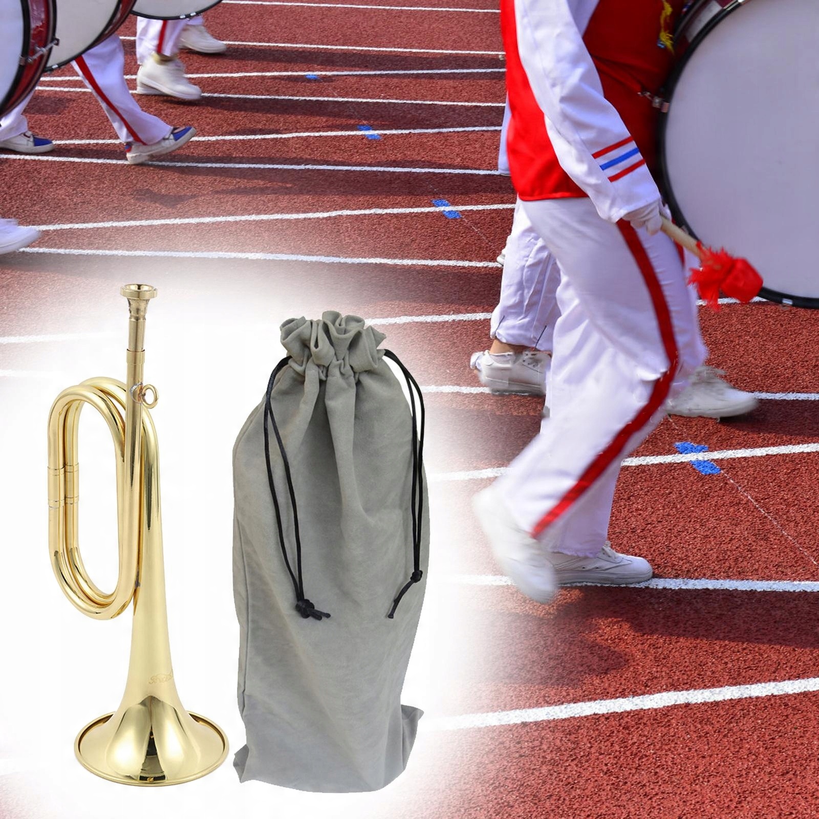 [Хороший матеріал]: Кавалерійська труба, виготовлена з високоякісної жовтої латуні, видає чистий і гучний звук з красивою золотою золотою звуком.
