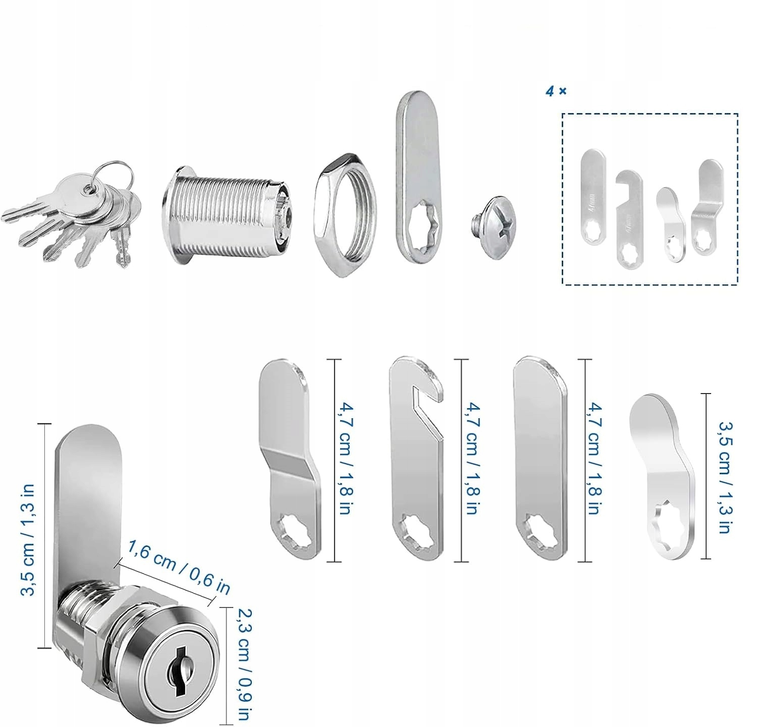 - Універсальне застосування: Замки можна легко встановити в різних місцях, таких як поштові скриньки, шафи, меблі, а також двері, як внутрішні, так і зовнішні.
