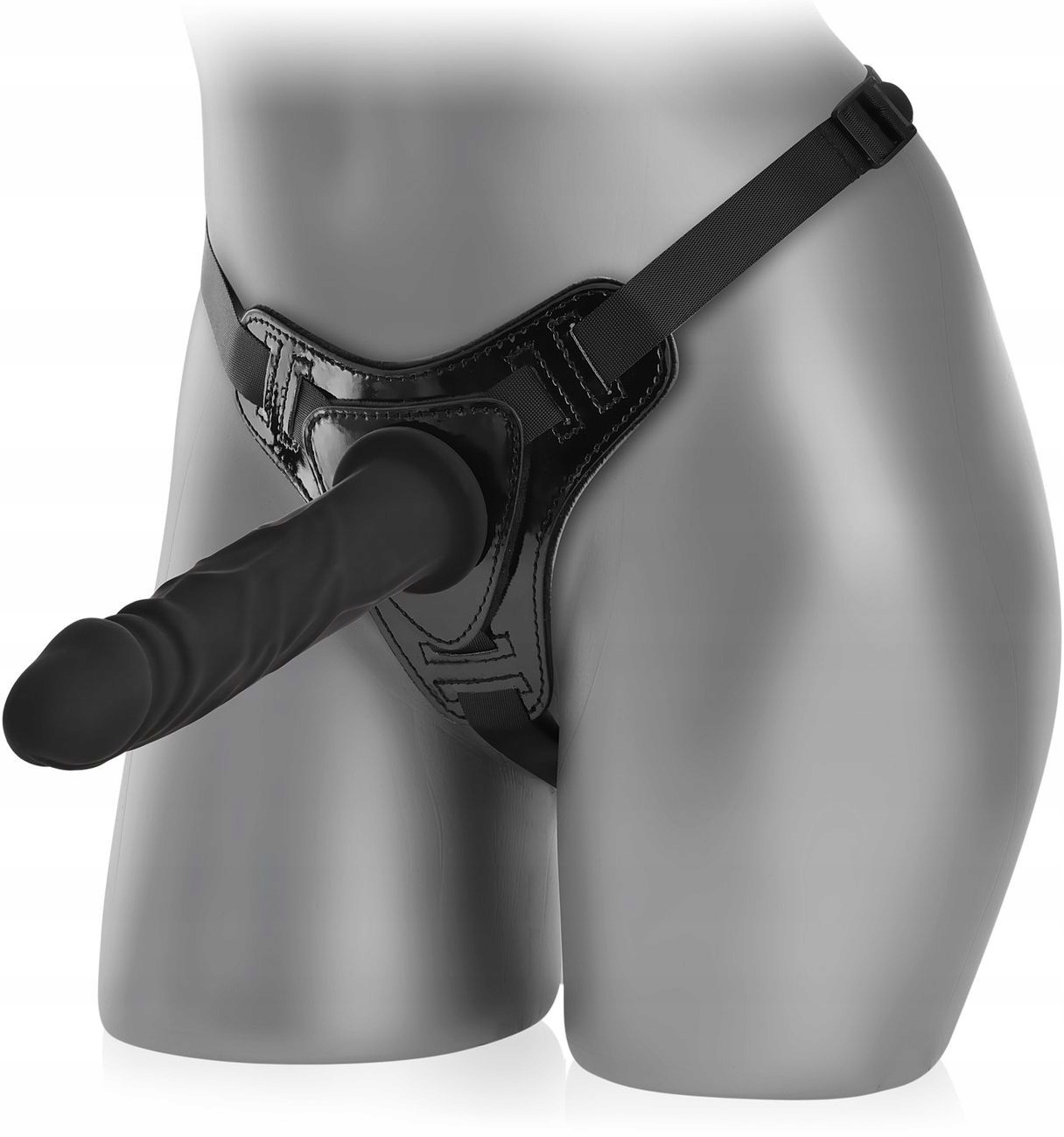 Елегантний страпон з лакованої екологічної шкіри та нейлонових ремінців шовковистого плетіння. Він оснащений твердим силіконовим пенісом, покритим збудливими, роздутими венами та з чітко окресленою головкою. Чудово проникає в жіночий і чоловічий ануси і мокру кицьку. Ремінь з внутрішньої сторони трикутної частини, яка тримає фалоімітатор, покритий м'яким плюшевим матеріалом, який обмежує подразнення. Ідеальний вибір для лесбійських пар і любителів гетеросексуального пегінгу.