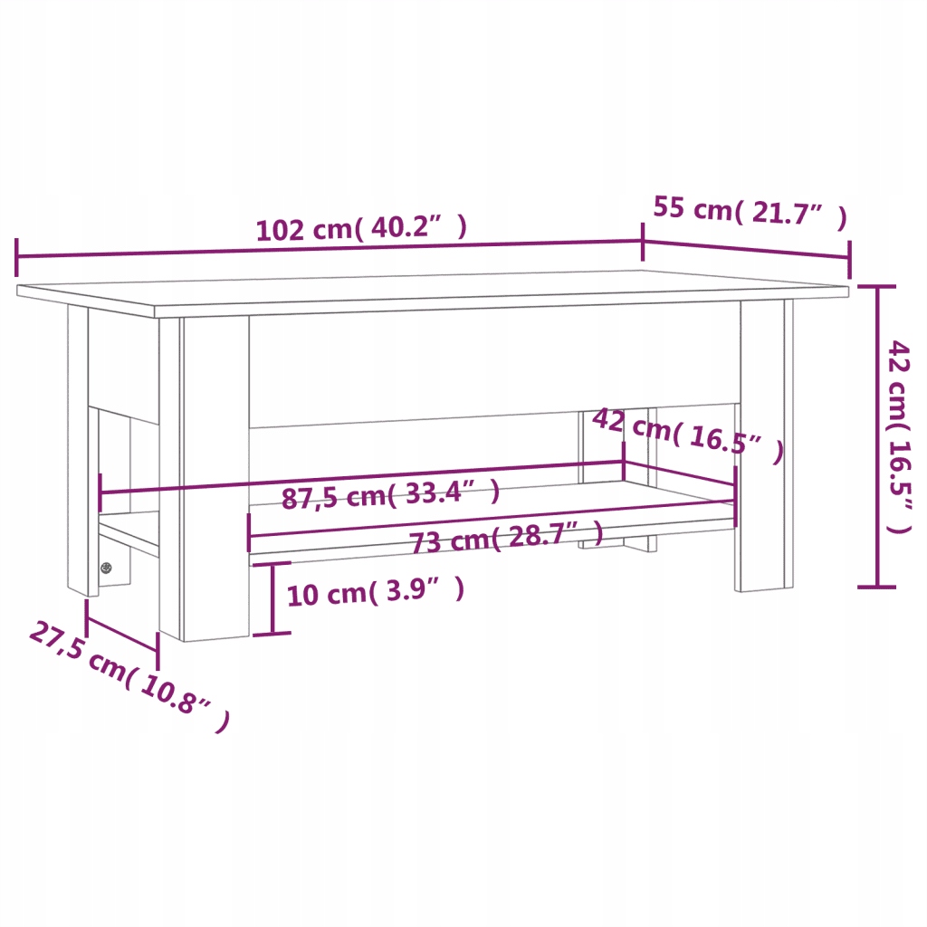 Журнальний столик, виготовлений із твердих соснових дерев, дуба Sonoma, 102x55x42 см