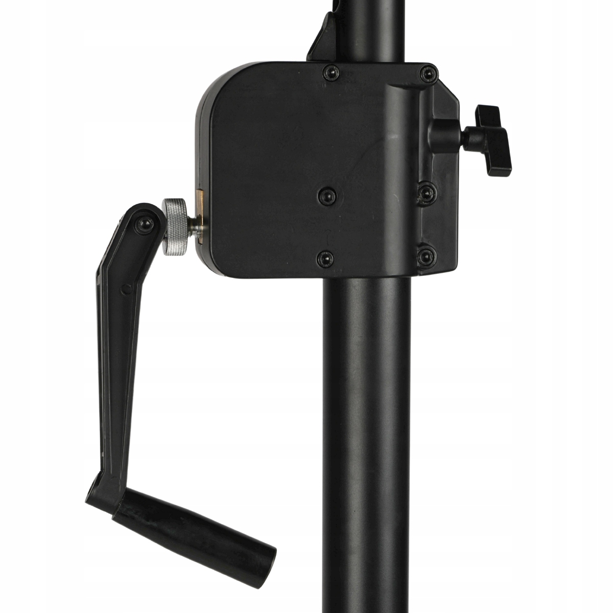 Налаштування висоти висоти зручного ліфта, а ручна ручка робить оптимальне налаштування висоти швидким, гладким та безпечним. Вам не потрібно піднімати важкі світильники вручну - регулювання кривошипа виконує роботу для вас. Ноги, що не є слизами Основи стабілізують ціле, навіть на слизьких поверхнях, що має вирішальне значення при роботі над фотографіями чи сценічними планами. Завдяки цьому обладнання готова діяти навіть у найвибагливіших умовах