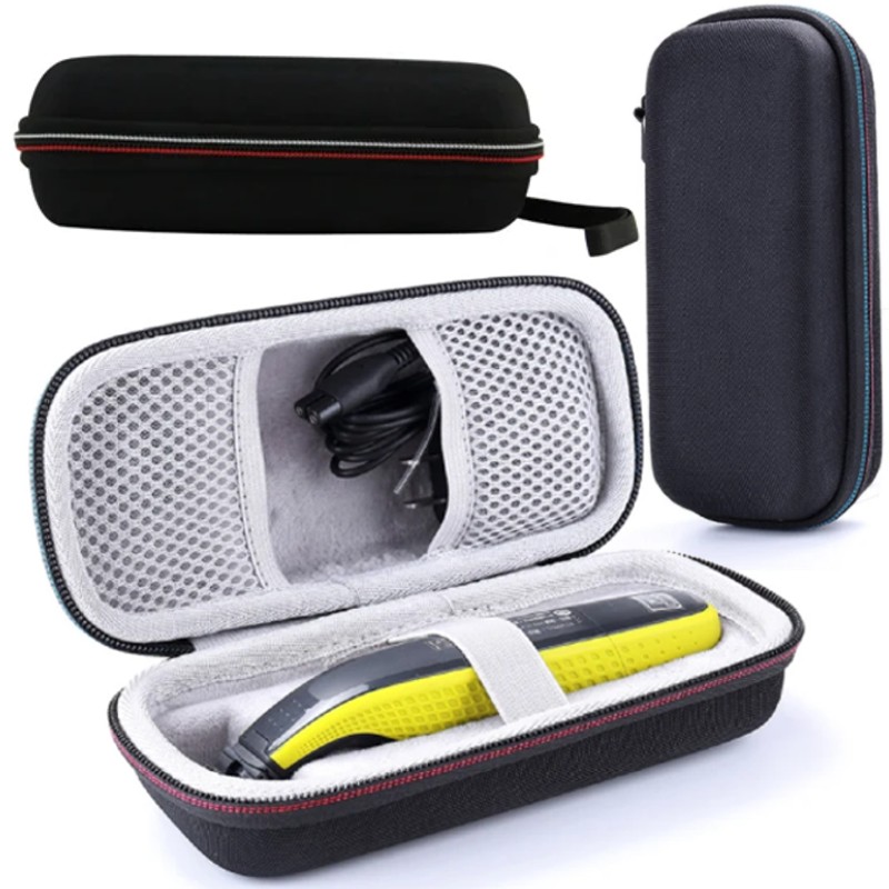 Виготовлений з високоякісного загартованого матеріалу , випадок ефективно поглинає удари, впливи та падіння , гарантуючи пристрій під час транспортування. Його жорстка конструкція додатково захищає бритву.