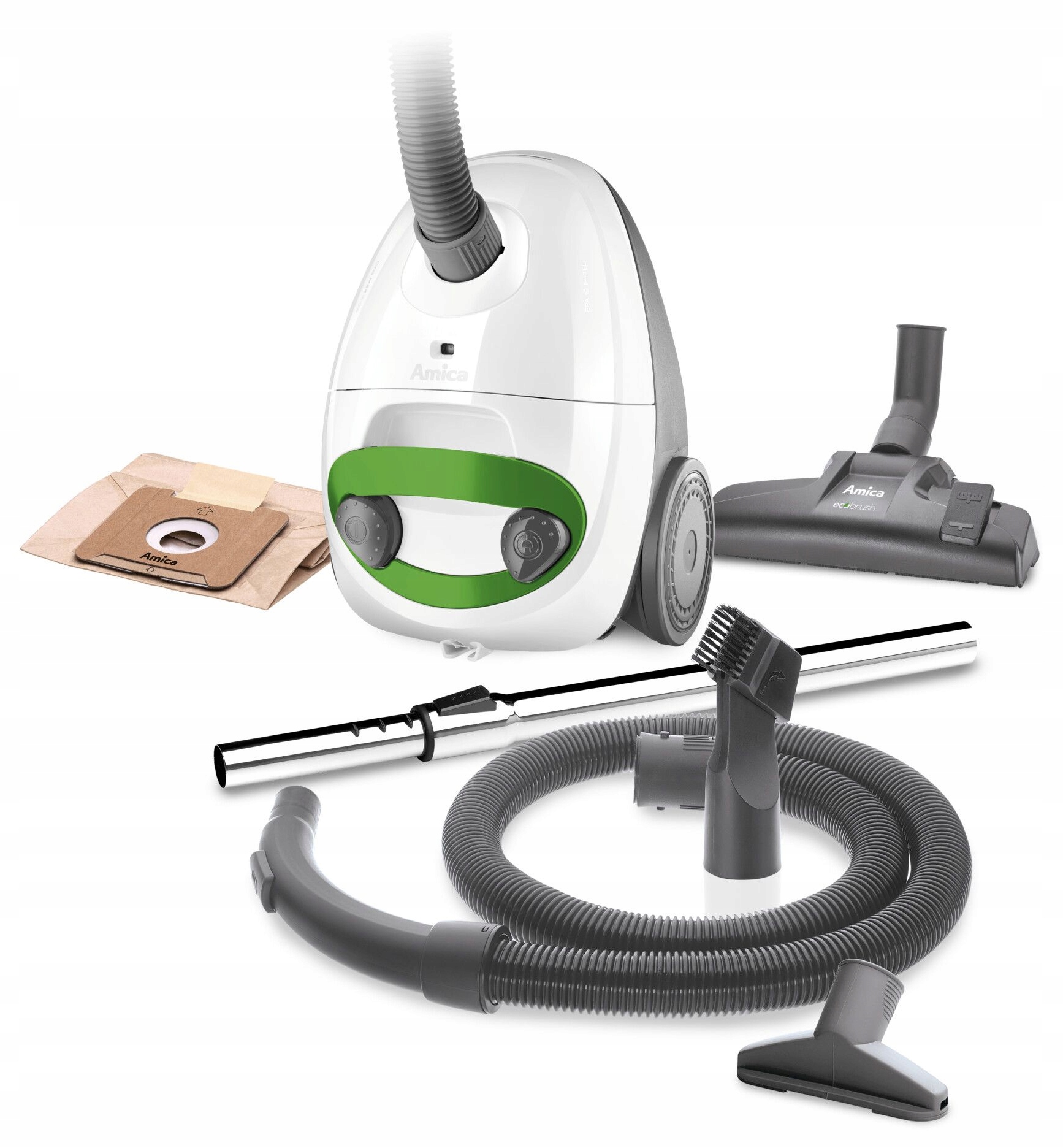 Amica Ora VM 1034 WACKUUM WACUUM очищувач потужністю 900 Вт та 2 л ємності мішка гарантує ефективне вакуумування в будь -яких умовах. Оснащений регулюванням потужності, дозволяє регулювати силу всмоктування до типу поверхні, забезпечуючи зручність та економію енергії.