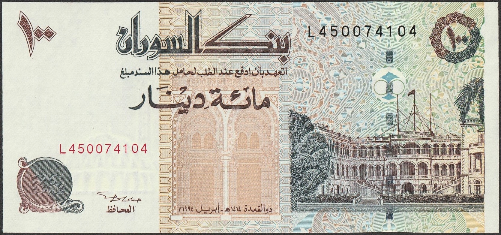 Судан 100 динарів 1994 - банківська держава UNC