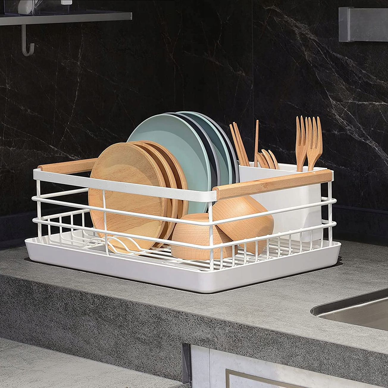 Ця практична сушарка не тільки при легко легко осушувати посуд, але й допомагає підтримувати порядок на стільниці. Сучасна форма в поєднанні з міцною металевою конструкцією та елегантними дерев'яними акцентами створює гармонійне поєднання стилю та функціональності.