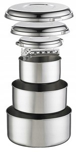 Набір сталевих суден для чотирьох людей.