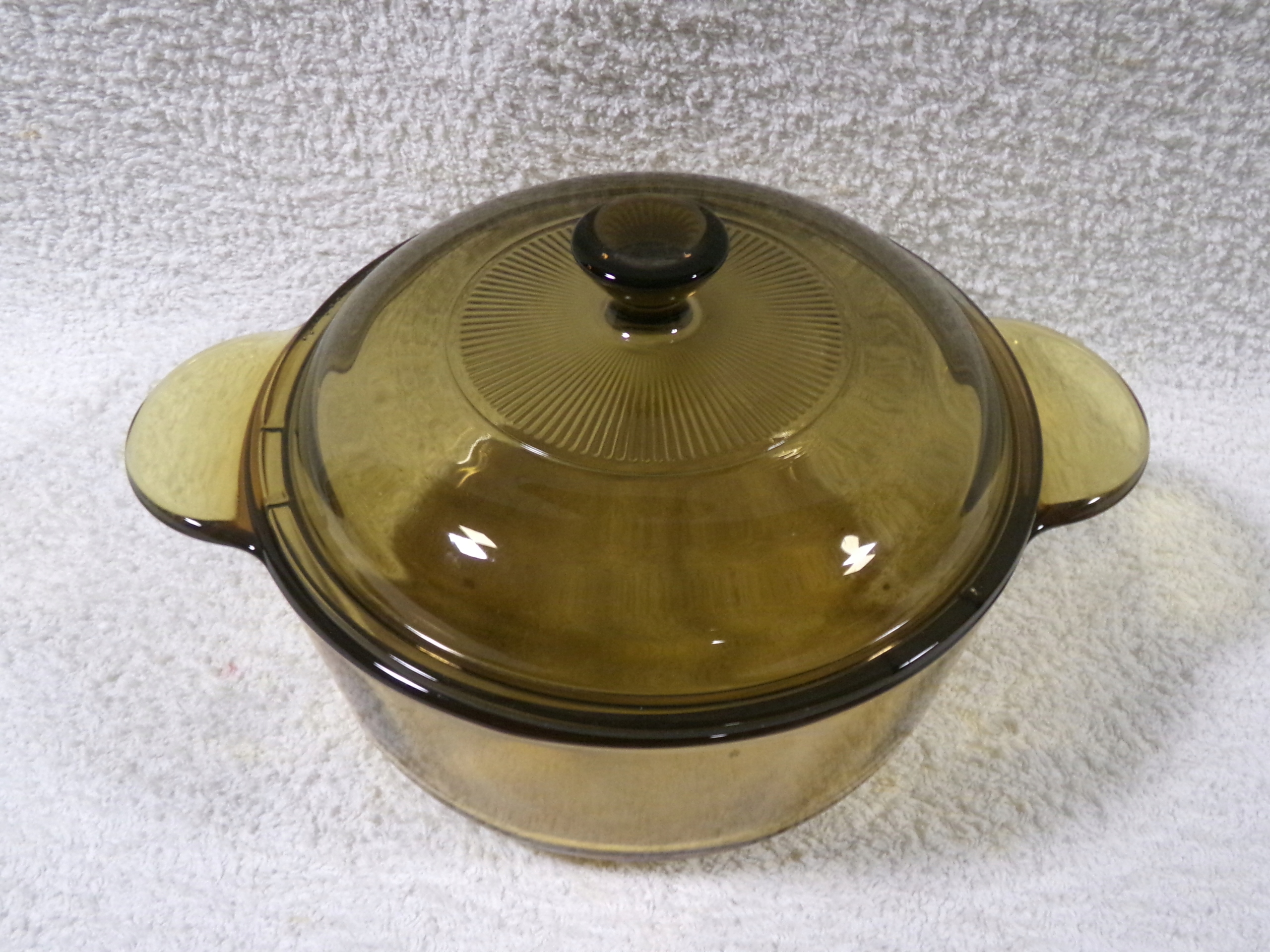 твердий тепло -стійкий посудина, виготовлена зі скла з висотою 15,5 см, діаметром 19 см, вагою 1,30 кг. Дуже хороший стан збереглося, без пошкоджень, чистим.