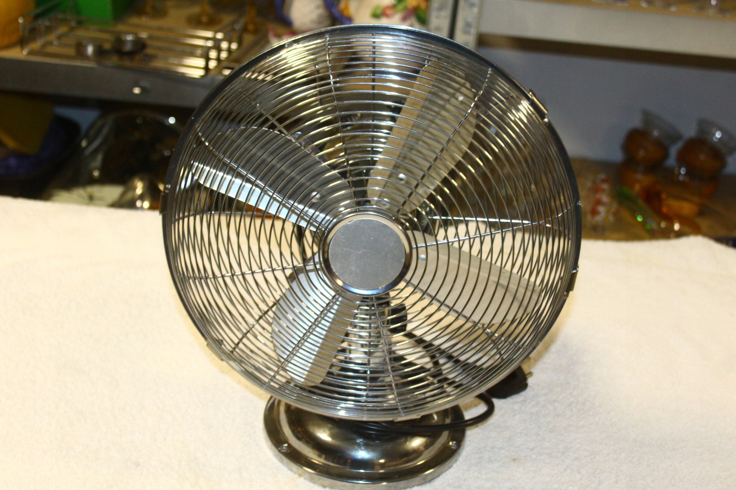 Сучасний настільний вентилятор з нержавіючої сталі, розміри 40,5x32x16,5 см, вага 1,73 кг. Неможливо вказати в правильному розділі, тому що для нього потрібен QR-код.