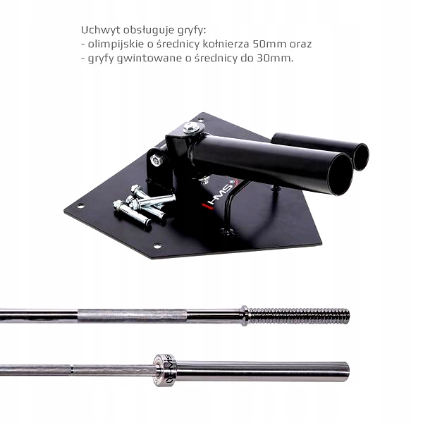UCG01 HMS – тримач для шиї. Використовуючи його, ми можемо виконувати вправи з т. зв половина штанги. Таким чином ми ідеально доповнимо класичне навчання. Ми з легкістю виконуємо гребки, жими плечами та багато інших вправ для кожної групи м’язів. Вертикальний і горизонтальний суглоб дозволяє будь-який рух у будь-якому напрямку.