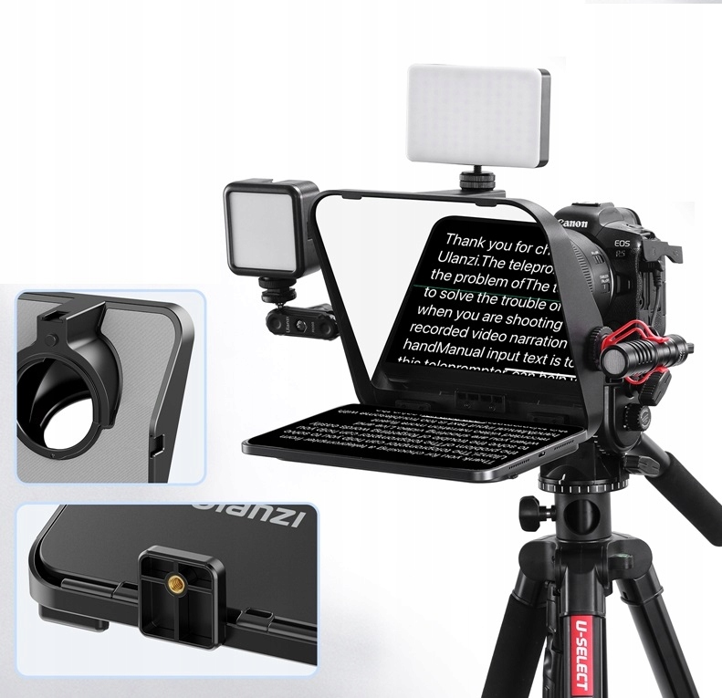 - Телесуфлер має холодний башмак ISO для кріплення додаткових аксесуарів, наприклад світлодіодної лампи чи мікрофона
