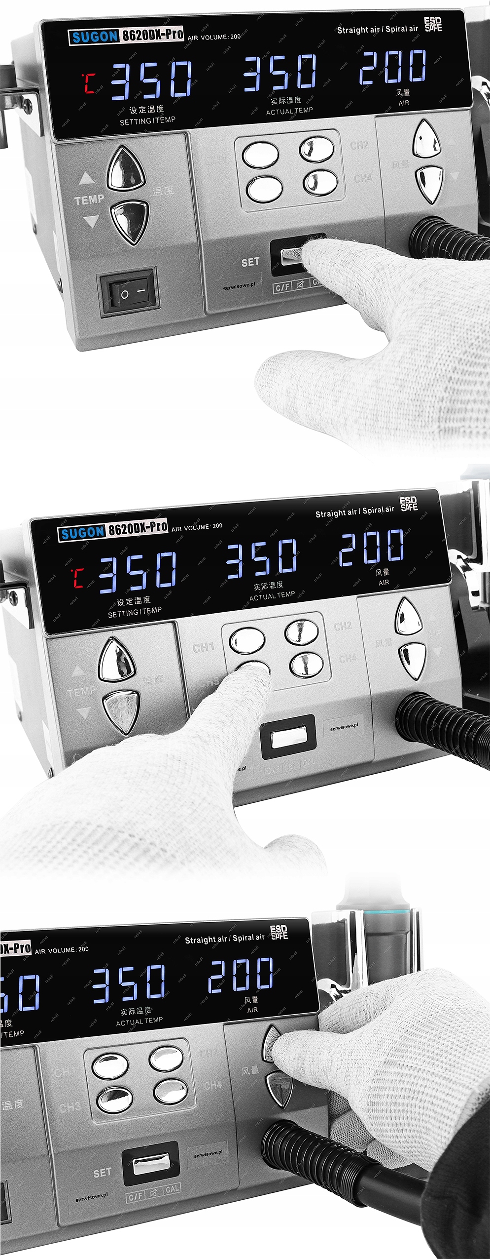 SUGON 8620DX 1300W на даний момент одна з найсучасніших і потужніших паяльних станцій HOT AIR з обдуванням гарячим повітрям. Вона в дуже широкій мірі відповідає всім вимогам, що пред'являються до станцій такого типу на ринку.
