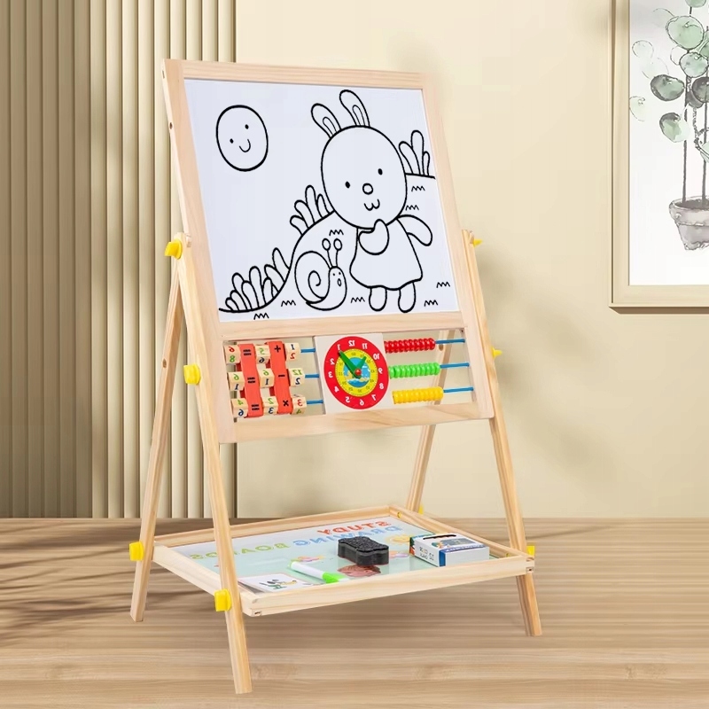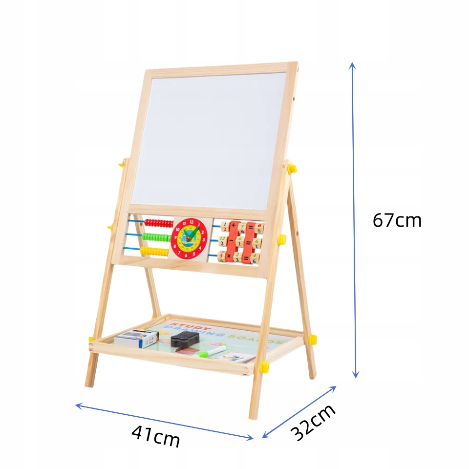 Подвійна плата -до 6 різних програм. Це дає змогу дитині пофарбувати крейдою на чорній стороні дошки та картина білою -на білій сторінці . У дошці також є класичний abacus з намистинами , з якими дитина розпочне пригоду з підрахунку. Потім він може вивчати основні математичні дії , такі як додавання, віднімання та множення. дитина також матиме справу з годинником , де він зможе вільно встановити час за допомогою підказок; Він навчиться розпізнавати час. На дошці також є алфавіт , який дозволить дитині познайомитися з першими літерами, які згодом створить перші слова.
