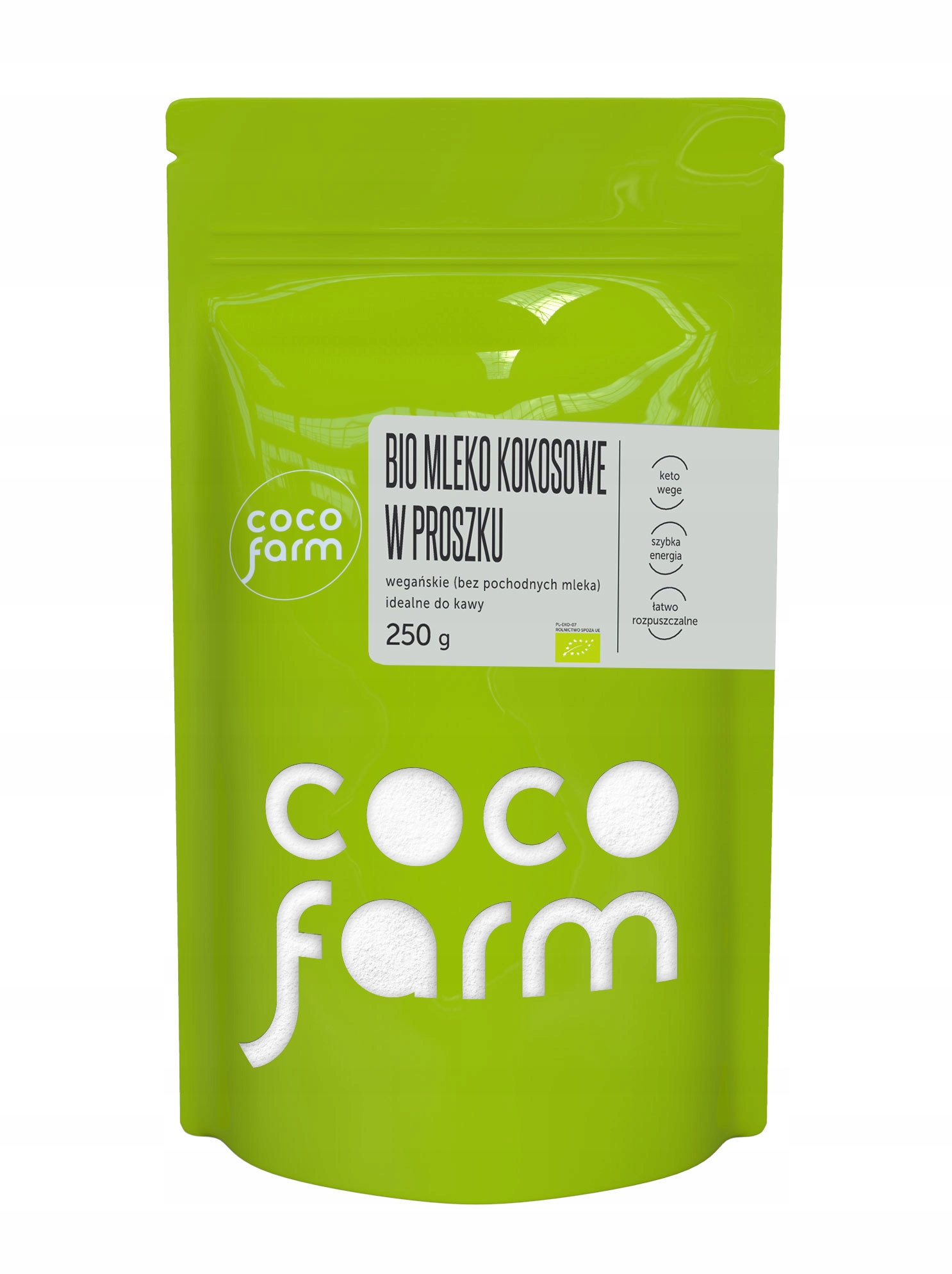 Кокосове молоко в природі не зустрічається, для приготування цього смачного продукту виробники змішують меленої м'якоті кокоса і води. Потім рідину подають у форму для порошку, щоб полегшити зберігання та використання. У сухому молоці ми можемо знайти такі добавки, як крохмаль тапіоки. На жаль, іноді ми можемо зустріти кокосове молоко, також у рідкій формі, яке містить речовини, що стабілізують Е. Сухе кокосове молоко Coco Farm є екологічно сертифікованим продуктом. Завдяки цьому, вибираючи їх, ви гарантовано отримуєте високу якість і перевірені інгредієнти.