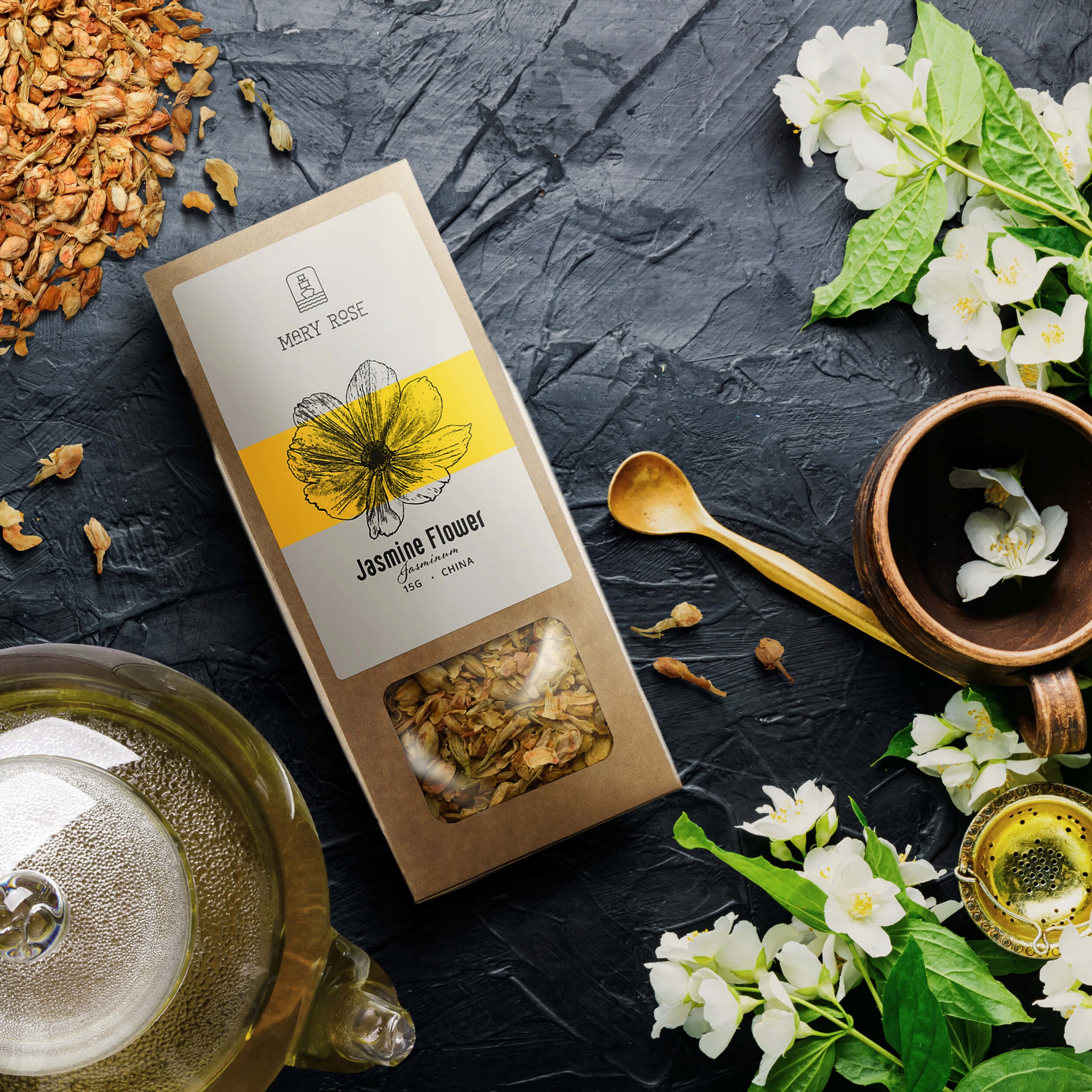 Жасмин походить з Азії, росте на території від Ірану до Китаю. Завдяки своїм цінним властивостям і неповторному смаку з його квіток готують натуральні настої. Жасминовий настій має світло-жовтий колір і приємний, дуже ароматний і водночас ніжний аромат. Смак злегка солодкуватий і ніжно тане на небі. Жасмин, доданий до чаю, йерба мате або трав, заспокоює смак і додає ефірного характеру.