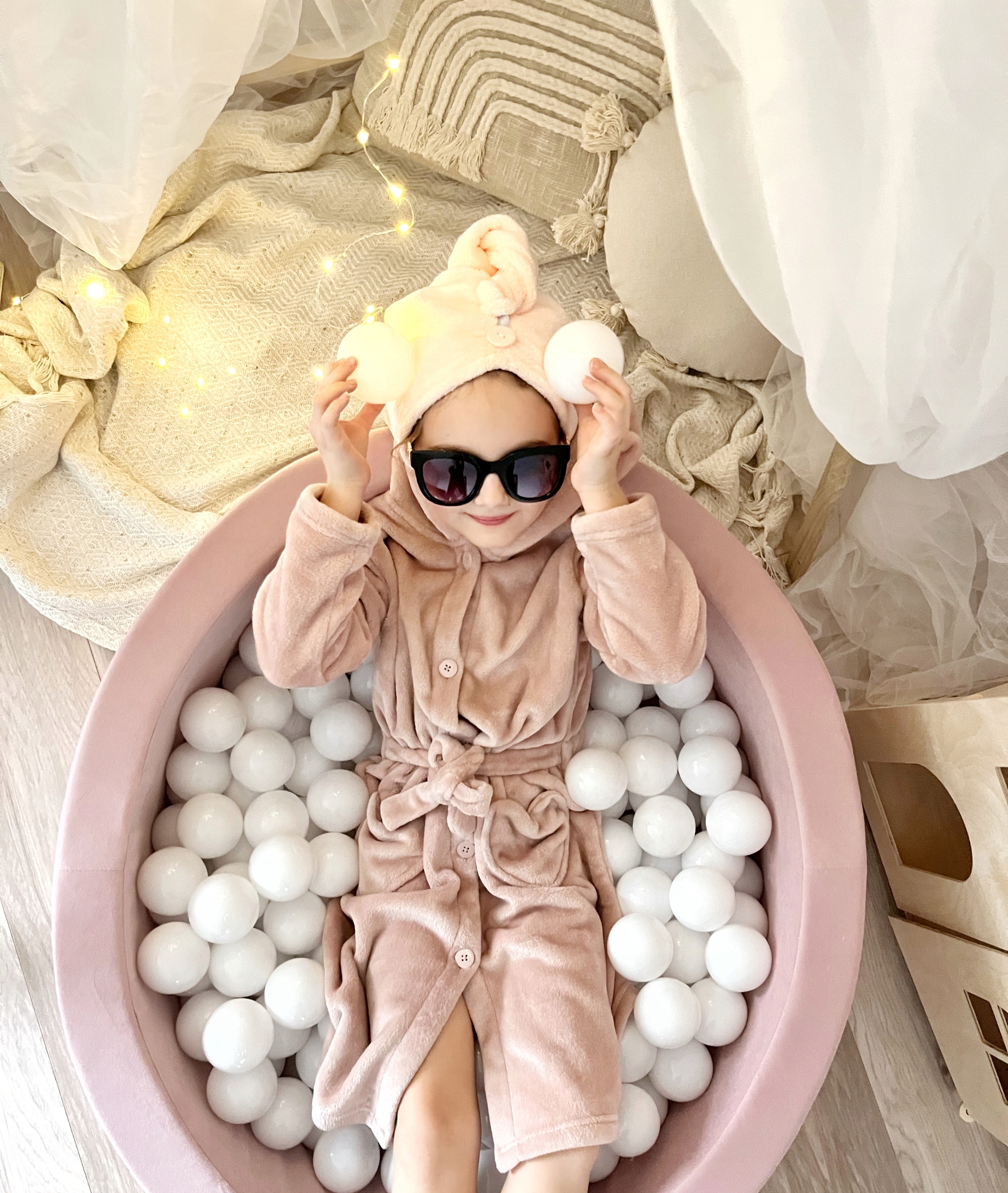 Басейн із сухими кульками виготовлений із м’якої та міцної оббивної тканини Velvet.