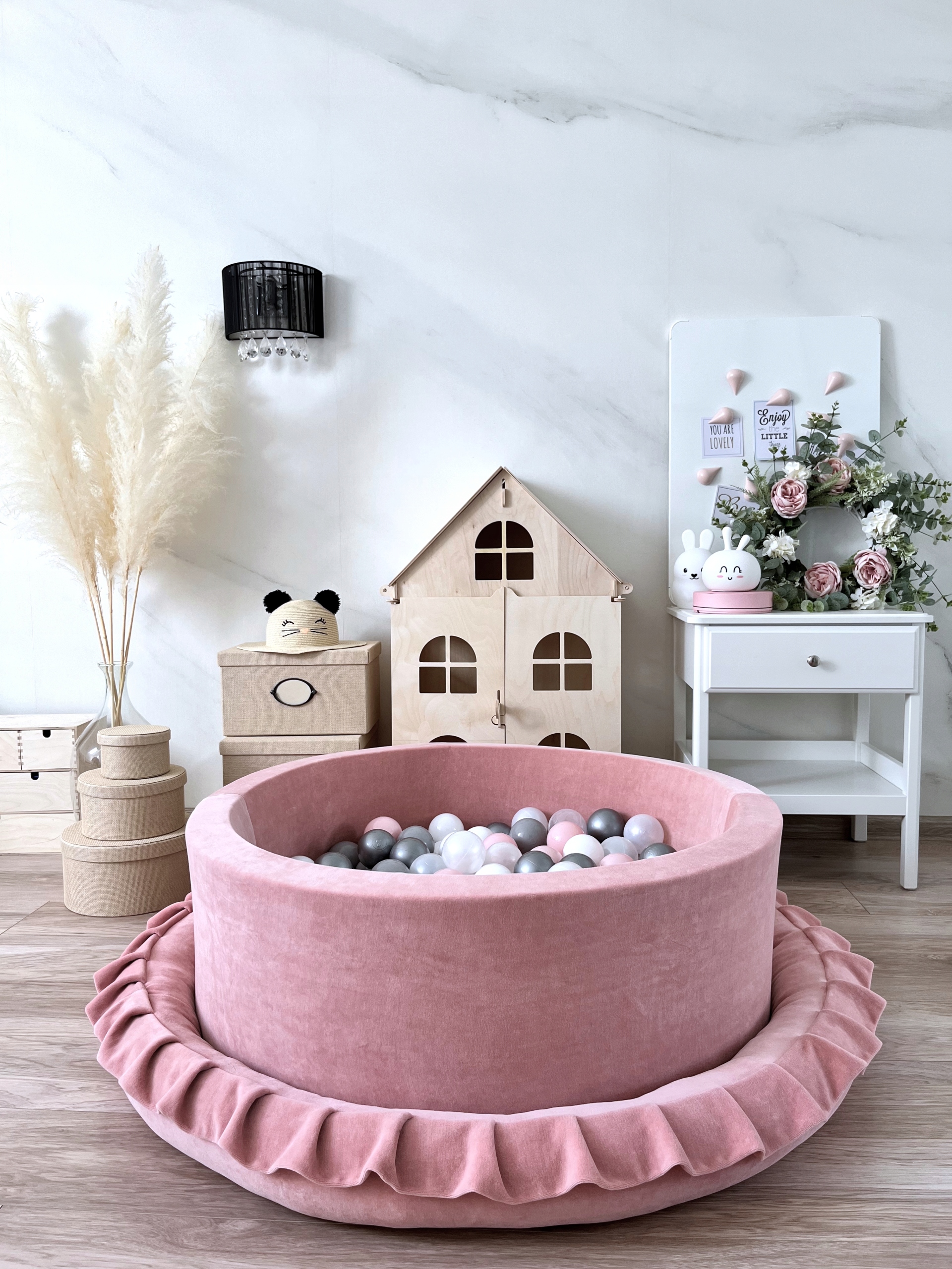 Сухий басейн з оксамитовими кульками 30x90 рожевий 200pieł - готовий мікс