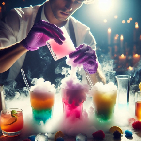 Сухий лід ідеально підходить для охолодження напоїв. Дуже швидко знижує температуру напоїв, створюючи ефект «димлячого напою». Його перевагою є сублімація - прямий перехід з твердої фази в газоподібну - це означає, що сухий лід не залишає слідів і тому не розбавляє напій. Це також не впливає на його смак і запах.
