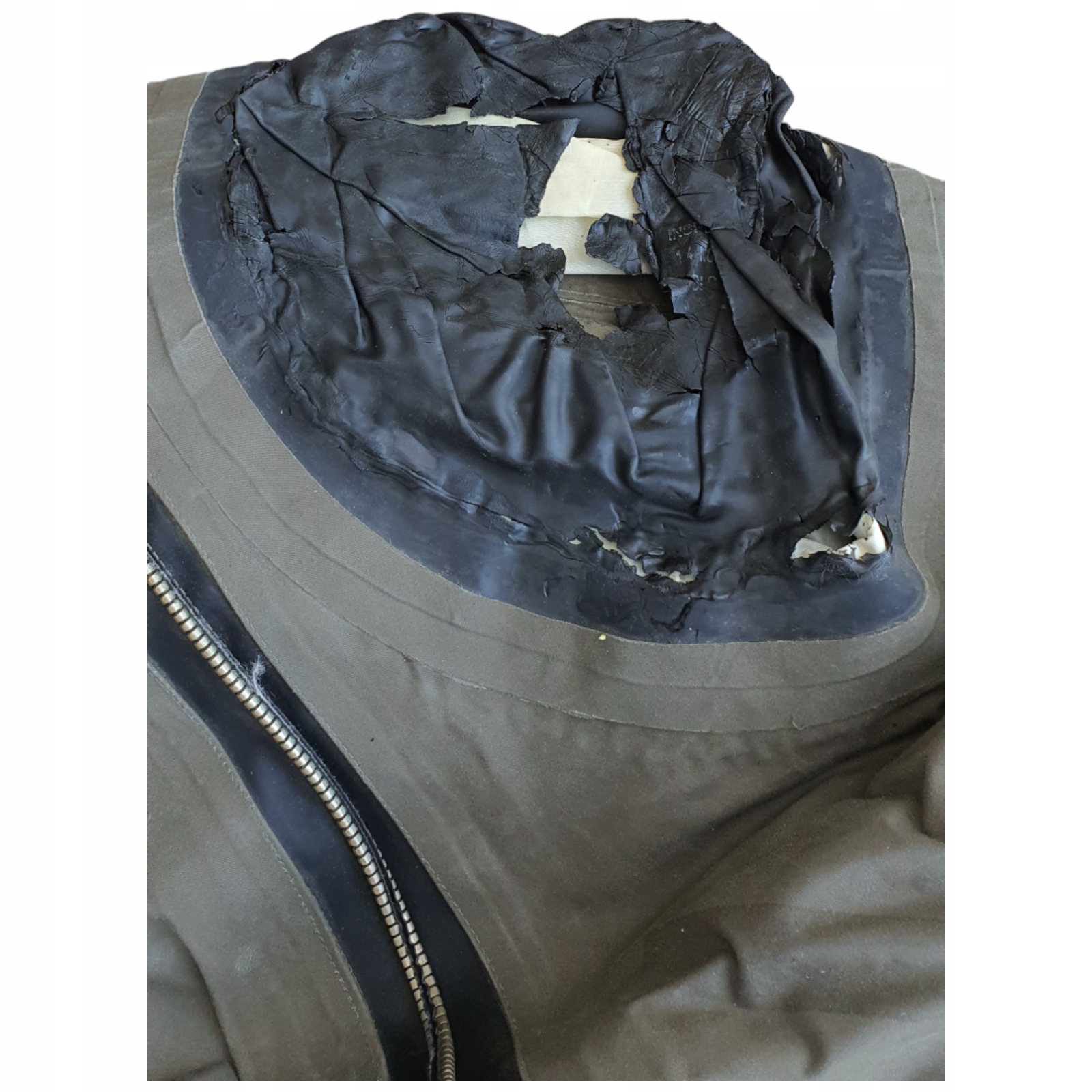 - СТАН: Б/В. Гумка в області шиї та в правому рукаві крихка та потріскана. Кришиться (пошкодження видно на фото). Військовий надлишок