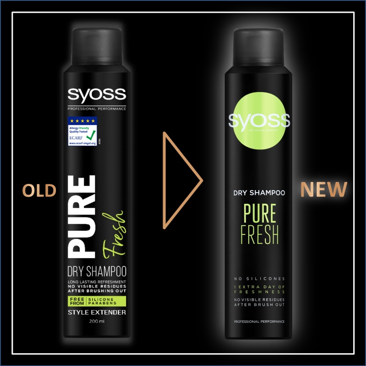 Вибирайте, створений за участю та Шампунь для сухого волосся SYOSS Pure Fresh, перевірений перукарями, забезпечить вам тривале освіження без миття волосся та без видимих слідів після розчісування.