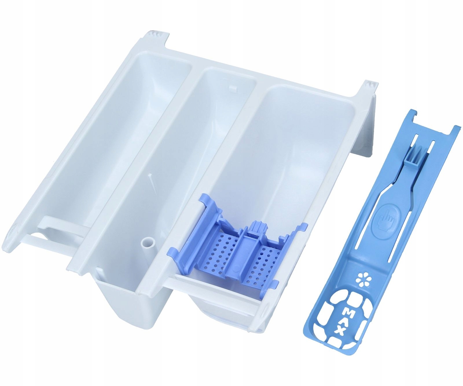 Пошкоджений або забитий дозатор порошку не працює належним чином. Пропонований ящик забезпечує правильне дозування миючого засобу. Змінний дозатор покращить результати прання тканин. Матеріал, з якого виготовлений дозатор - пластик.