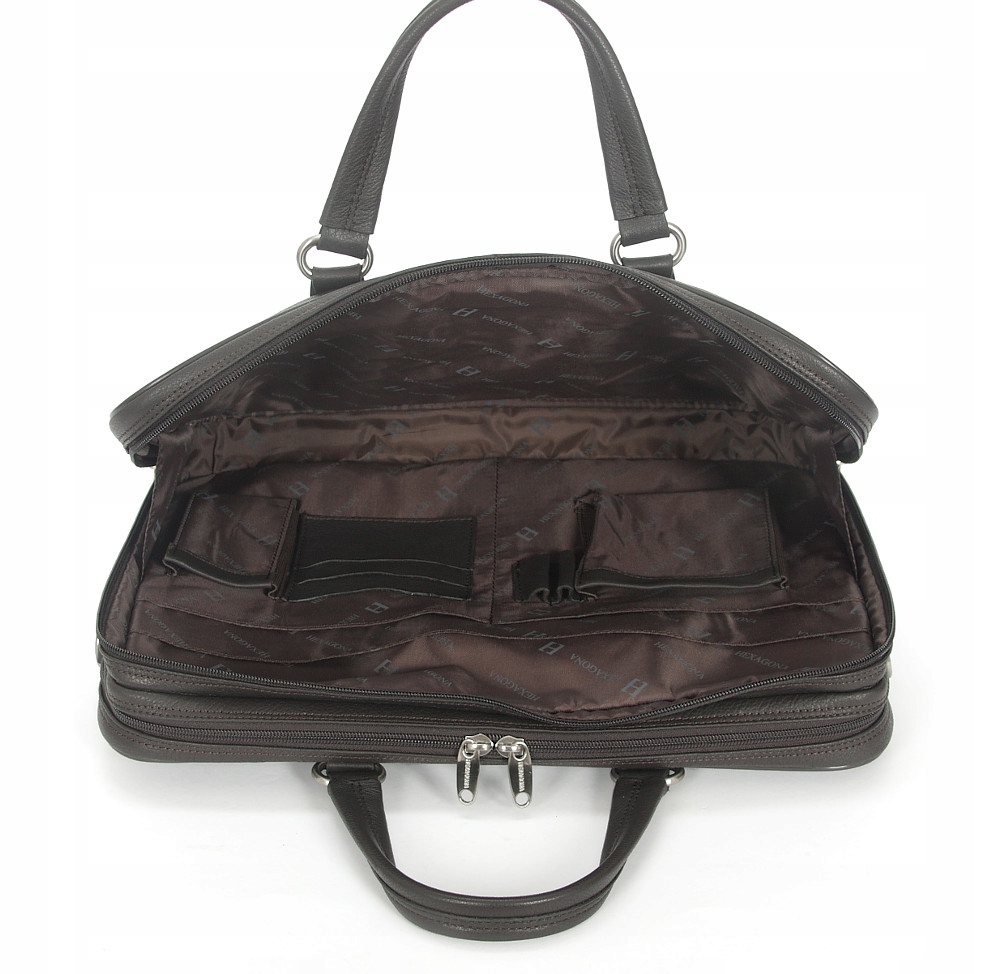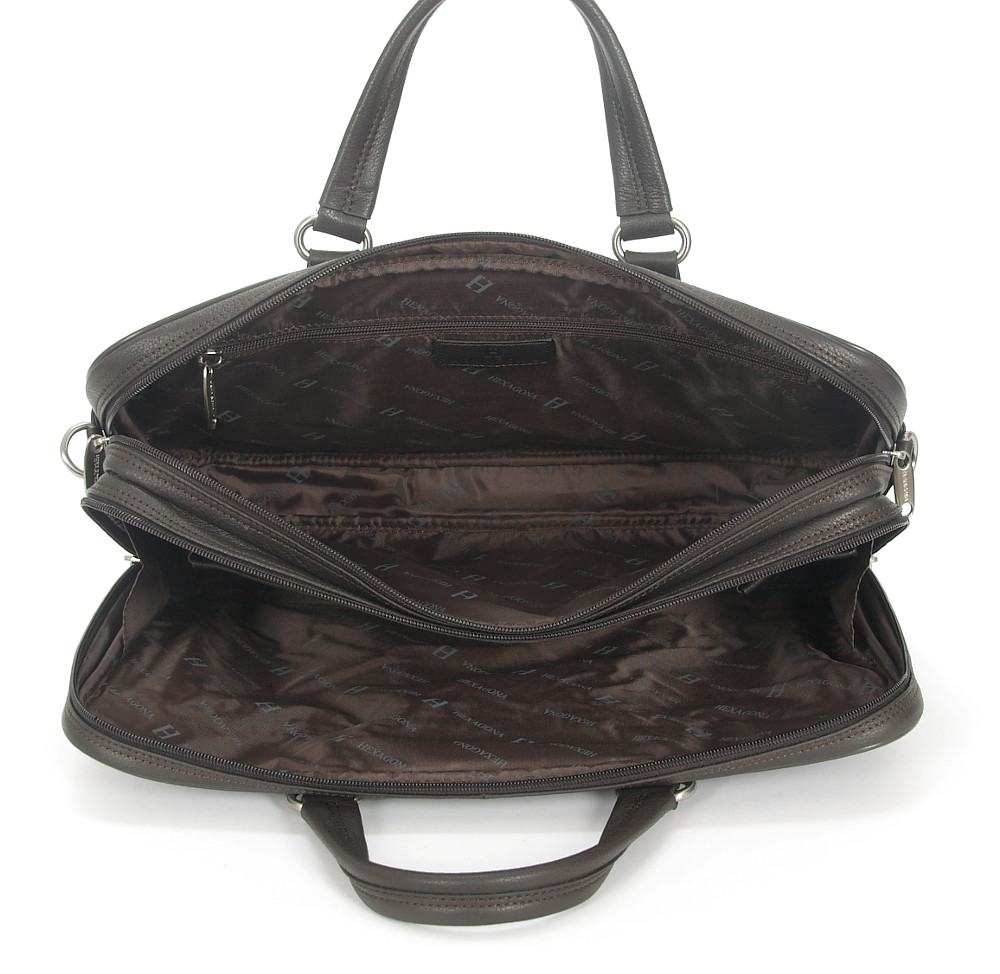 Чудова сумка, ідеальний супутник для роботи та подорожей. Виготовлений французькою компанією HEXAGONA з м’якої темно-коричневої шкіри з повним зерном.